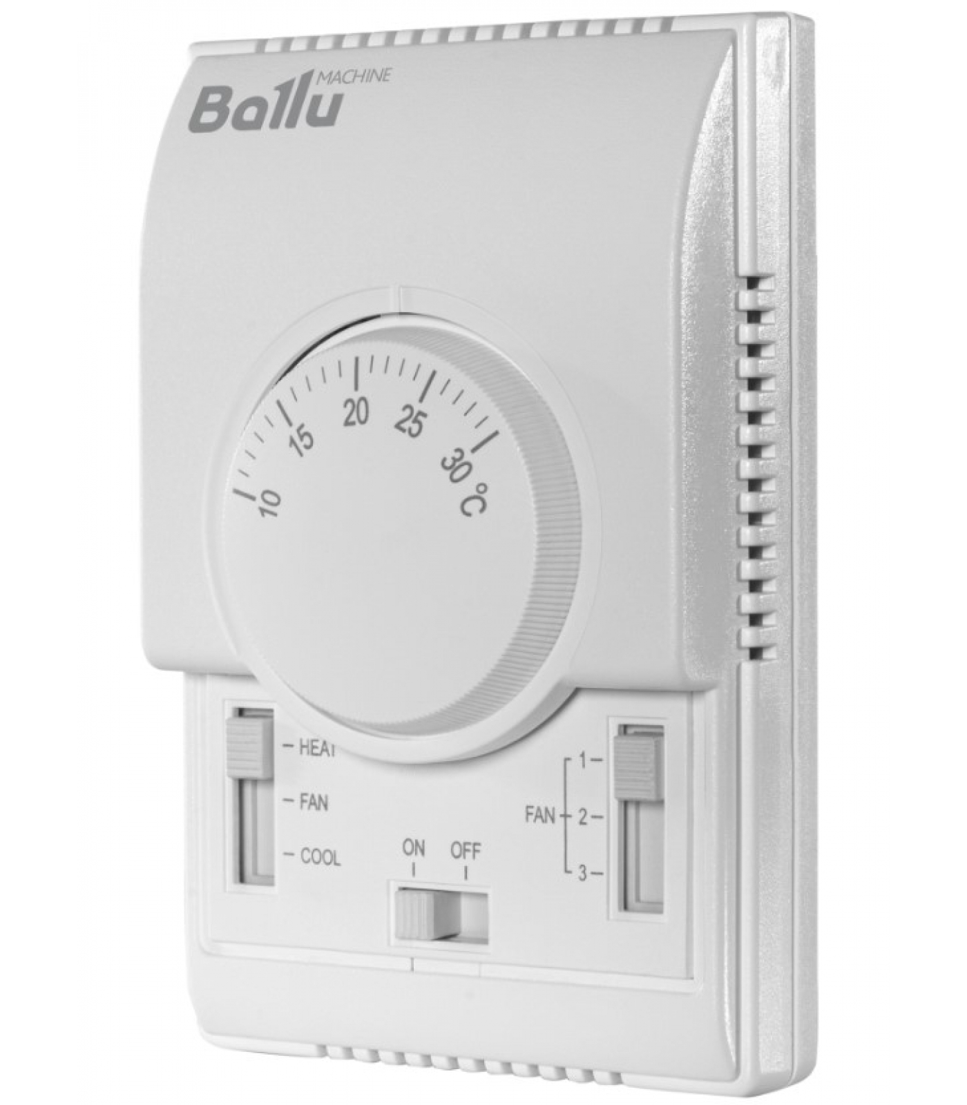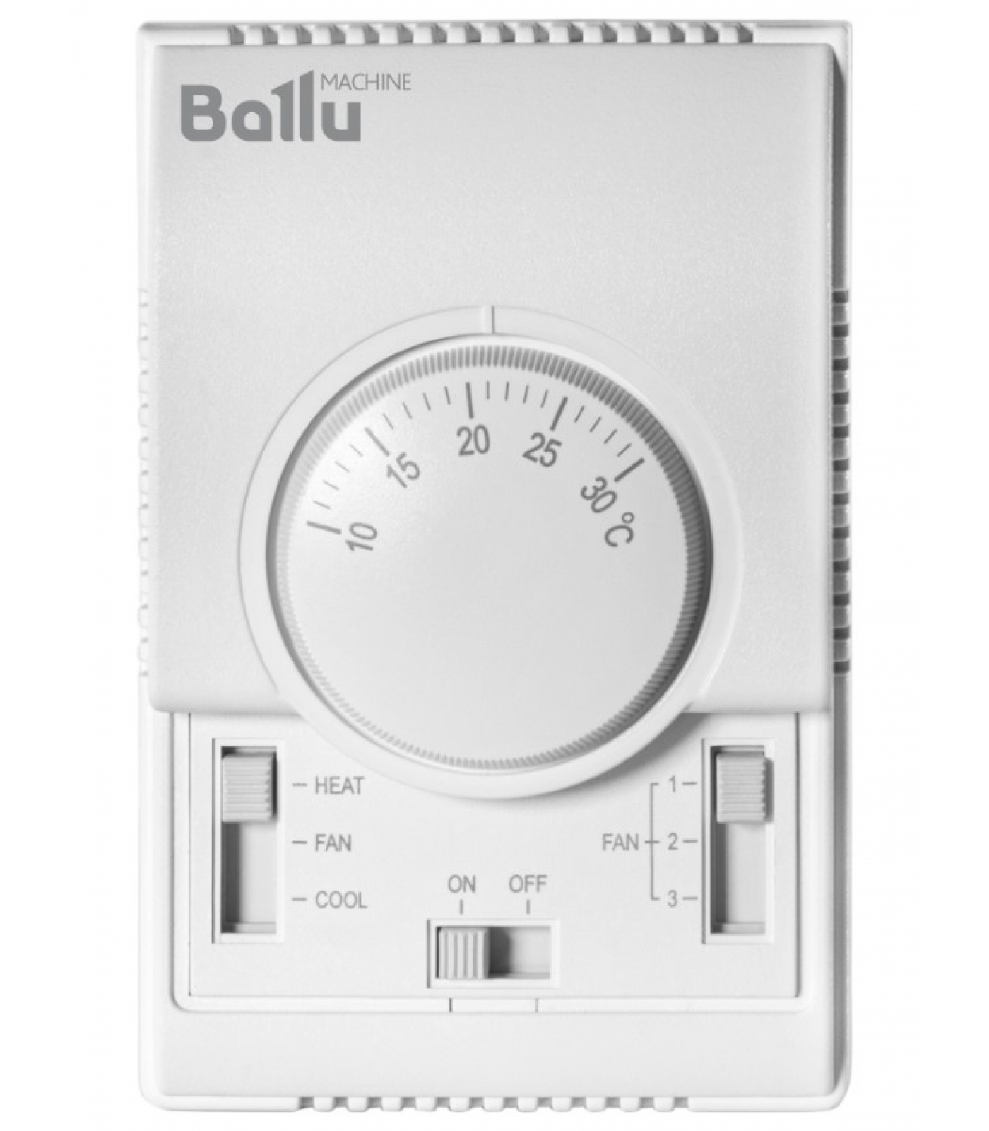 Механический термостат Ballu BMC-2 для автоматического поддержания температуры помещения и регулирования расхода воздуха на водяных тепловентиляторах BALLU MACHINE серии W2, W3, W4 и BDS. Термостат оснащен встроенным температурным датчиком, который измеряет температуру внутри помещения, и при достижении заданного значения подает команду на выключение вентилятора и перекрытие потока теплоносителя через теплообменник