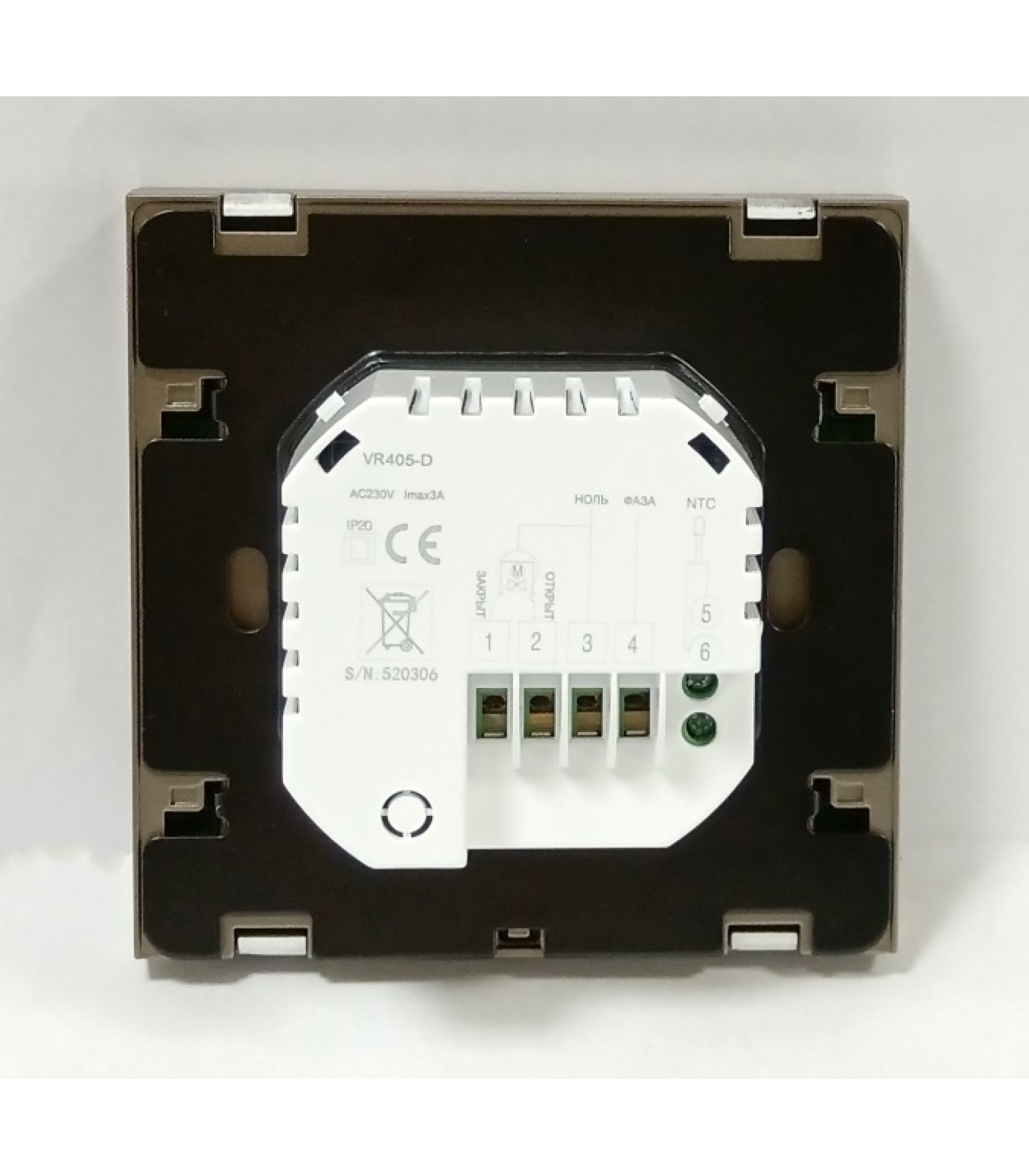 Монтаж термостата производится в стандартную коробку скрытой проводки.