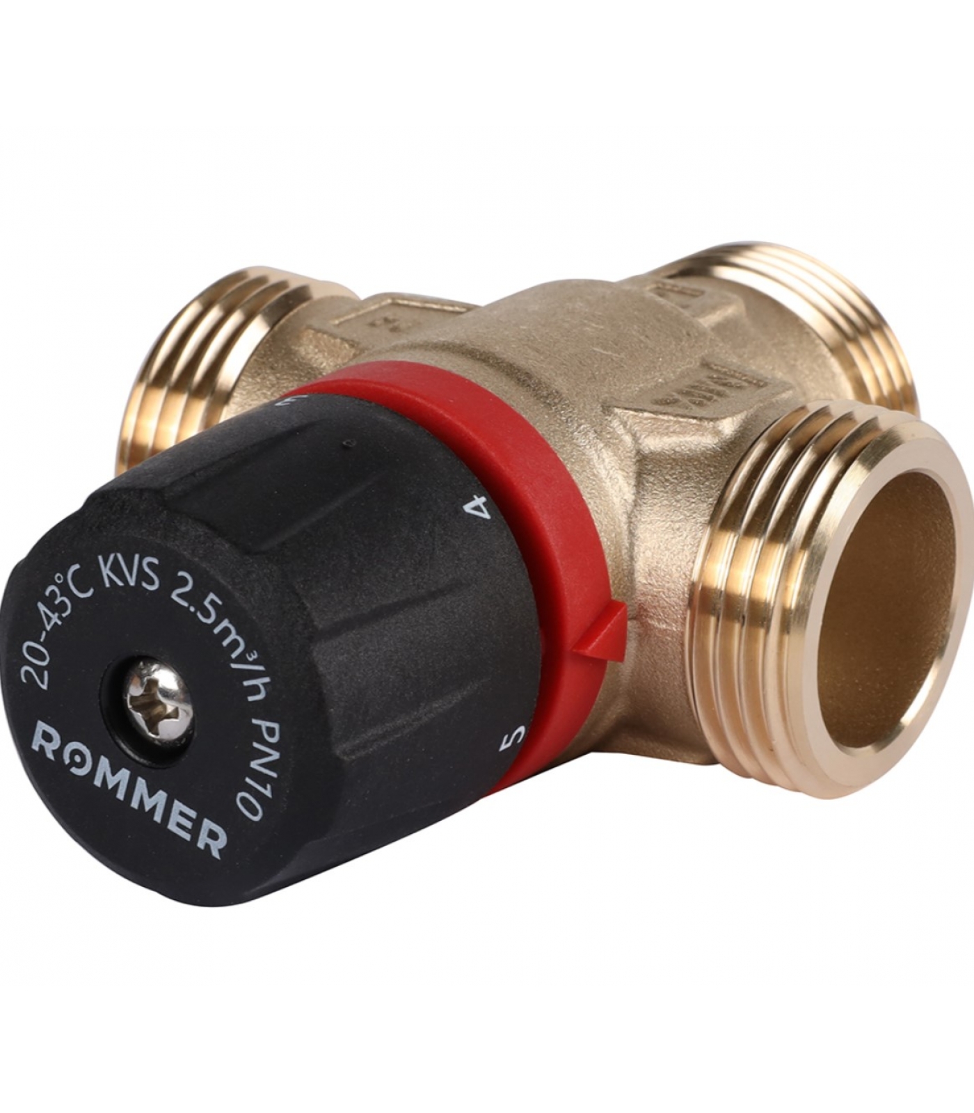 Термостатический смесительный клапан 1"нр Rommer 20-43C, 2.5м3/ч для ГВС и отопления