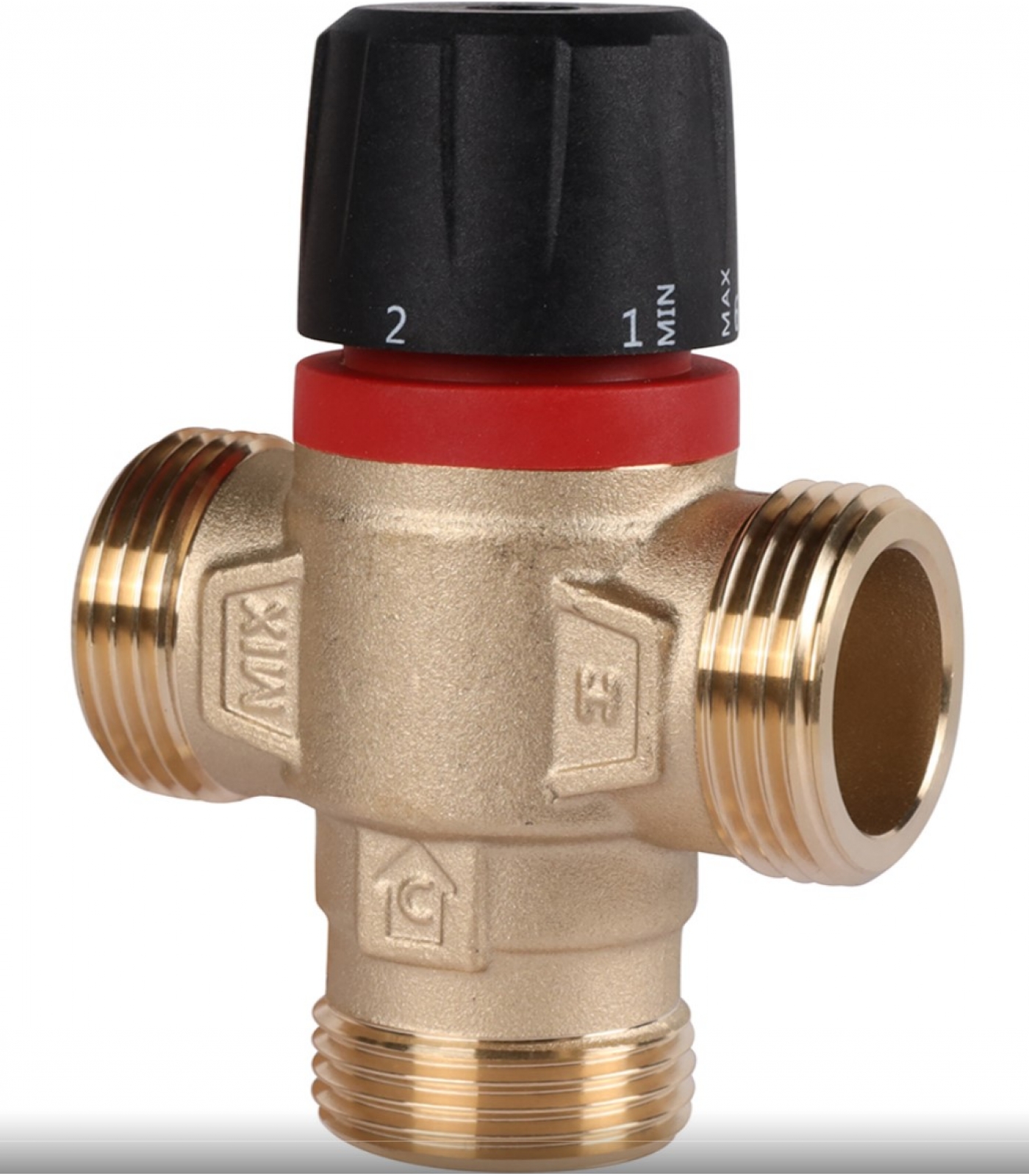 Термостатический смесительный клапан имеет два входных штуцера для подвода смешиваемых сред и один выходной. В клапан встроен перенастраиваемый термостатический элемент, поддерживающий в зависимости от модификации клапана температуру теплоносителя.