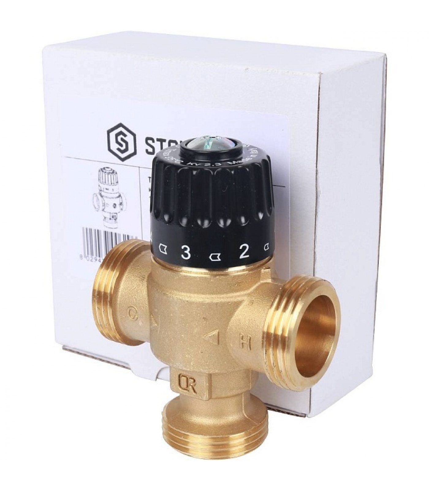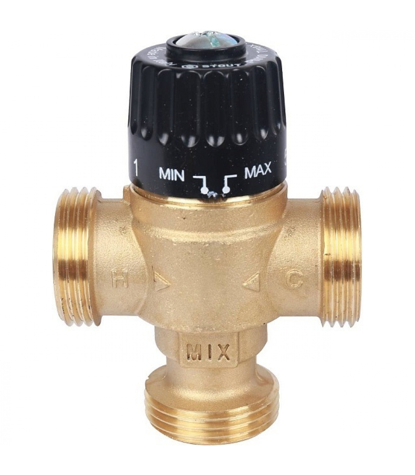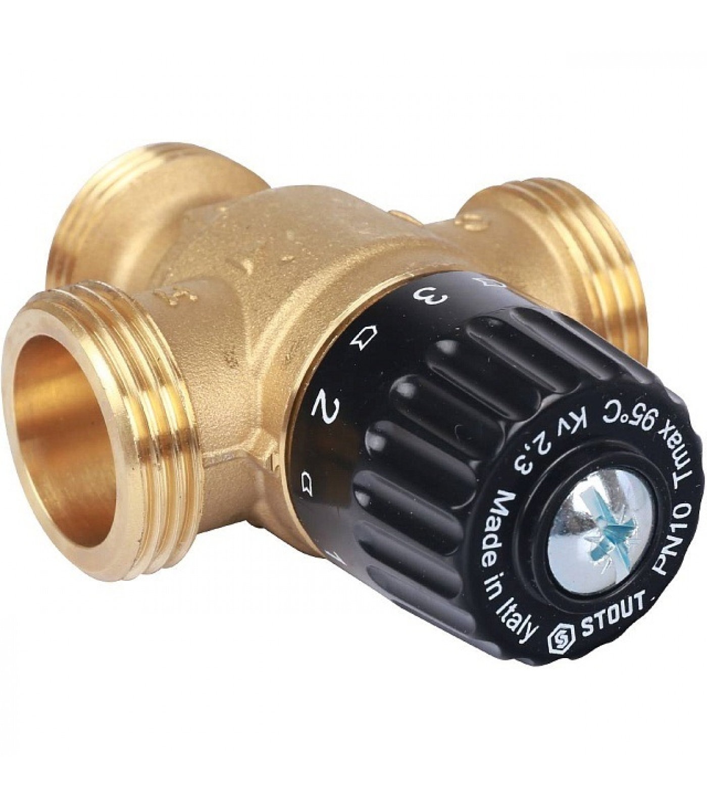 Термостатический смесительный клапан для систем отопления и ГВС 1" STOUT НР 30-65°С KV 2,3, центральное смешивание