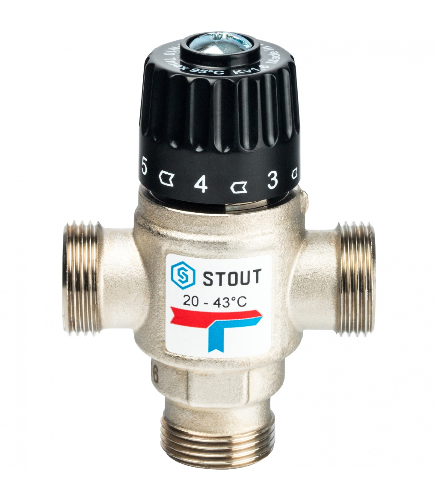Термостатический смесительный клапан 3/4"нр Stout 20-43C, 1.6м3/ч для ГВС и отопления