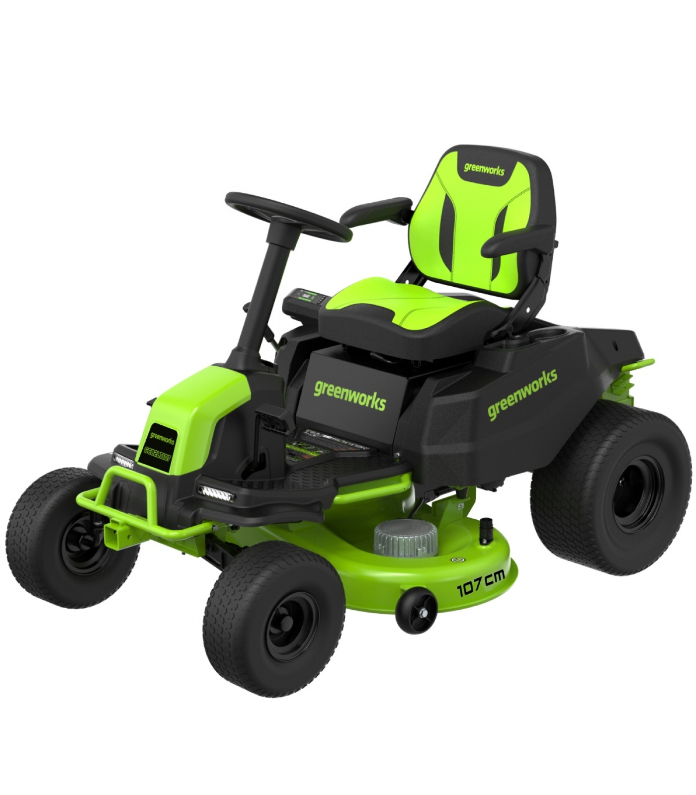 Трактор садовый Greenwоrks Арт.7404507, модель GC82LT107, 82V, без АКБ и ЗУ платформы Greenworks Commercial 82V - высокопроизводительная машина для ухода за газоном.