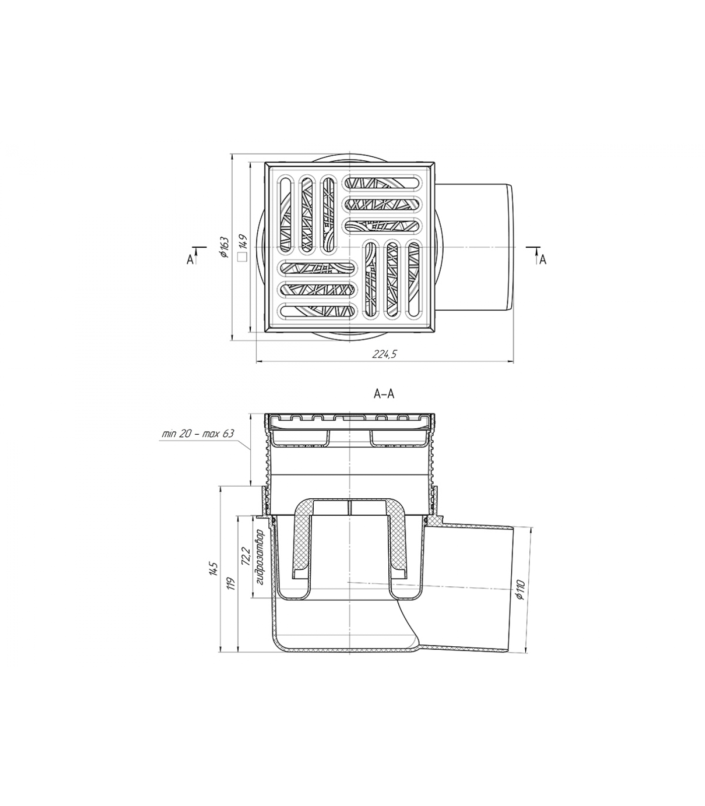 Трап горизонтальный 110 (150х150) TA1612 Ани Пласт