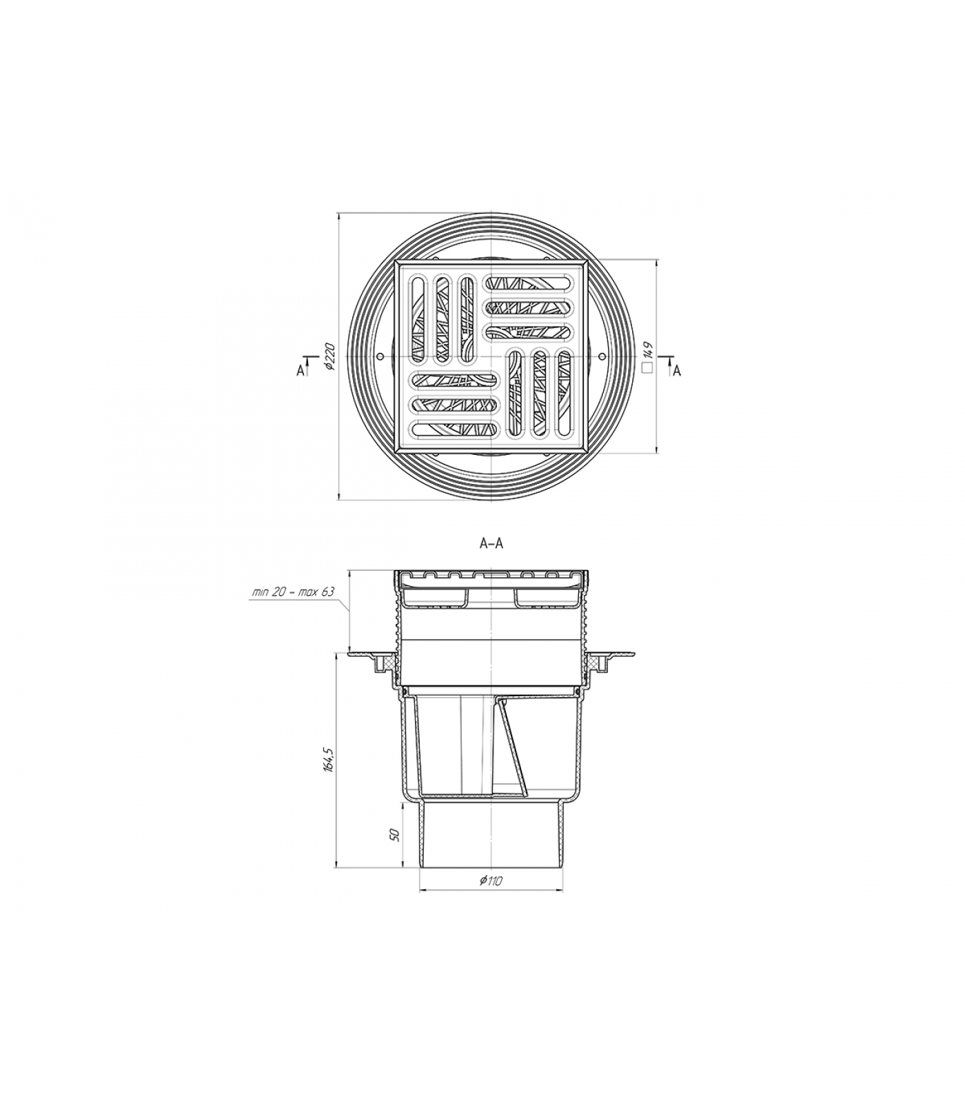 Трап вертикальный 110 (150х150) СУХОЙ TQ1712 Ани Пласт