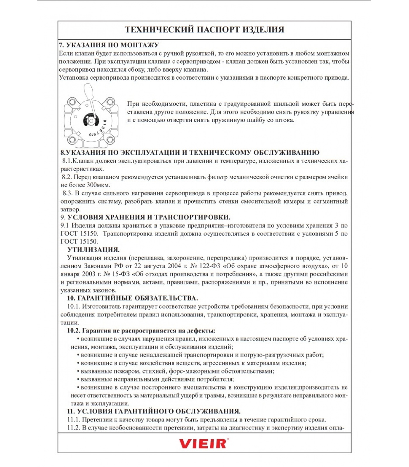Регулирование клапаном может осуществляться как вручную, так и с помощью серводвигателя с крутящим моментом не менее 5Нм (рекомендуются серводвигатели VR294 и VR298).
