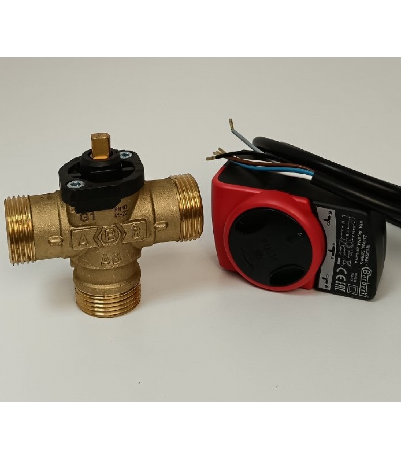 Трехходовой зональный клапан Stout 1" нр, 8.0м3/ч, с сервоприводом 230V, кабель 1м