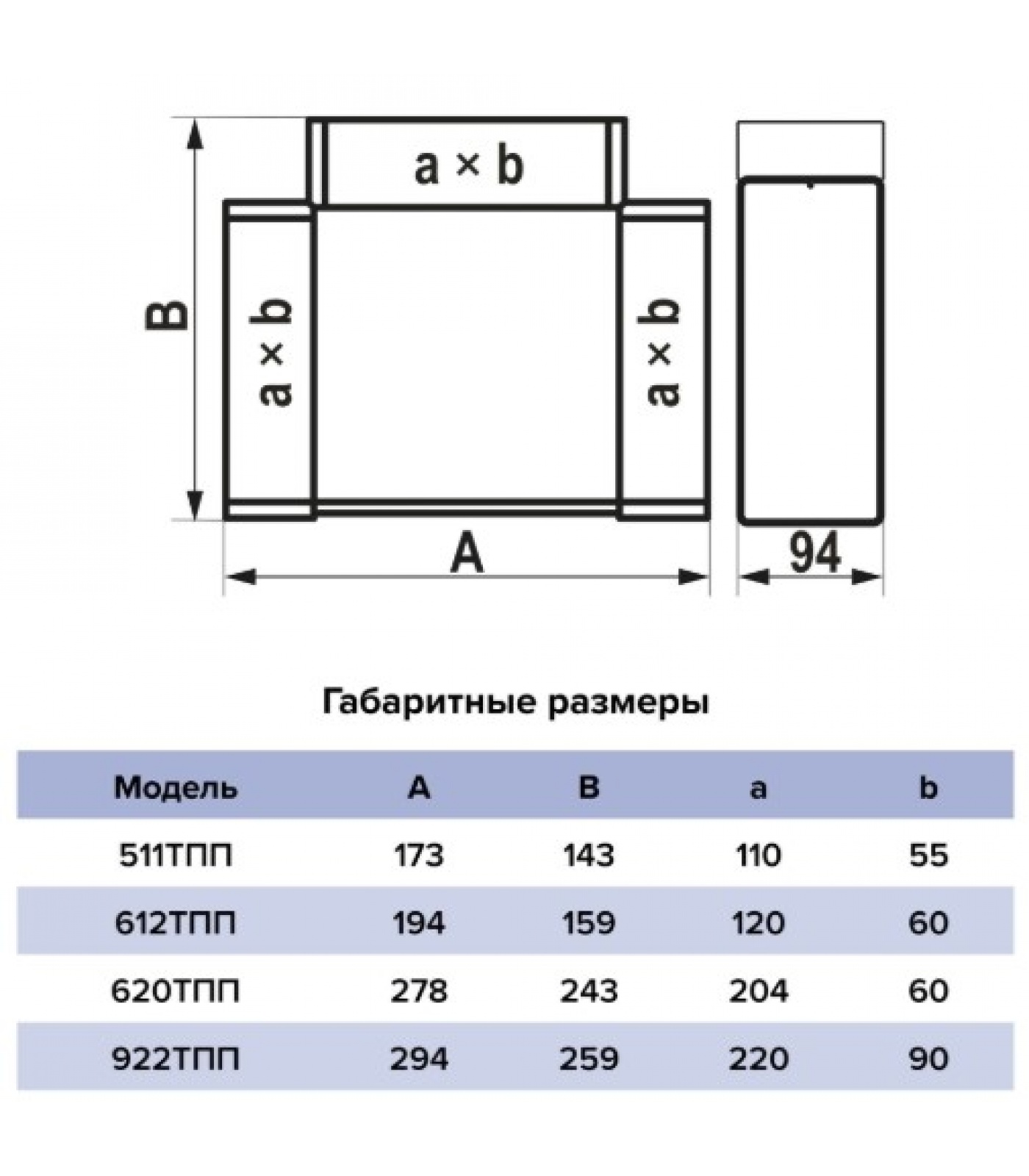 Тройник воздуховода 60х120мм Era ТПП плоский пластиковый