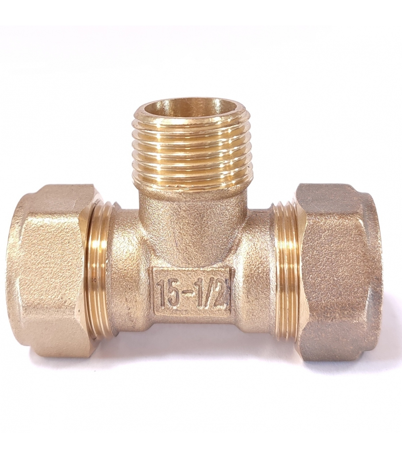Hydrosta Тройник соединительный для гофрированных труб 15 мм с отводом под 90° с наружной резьбой 1/2"