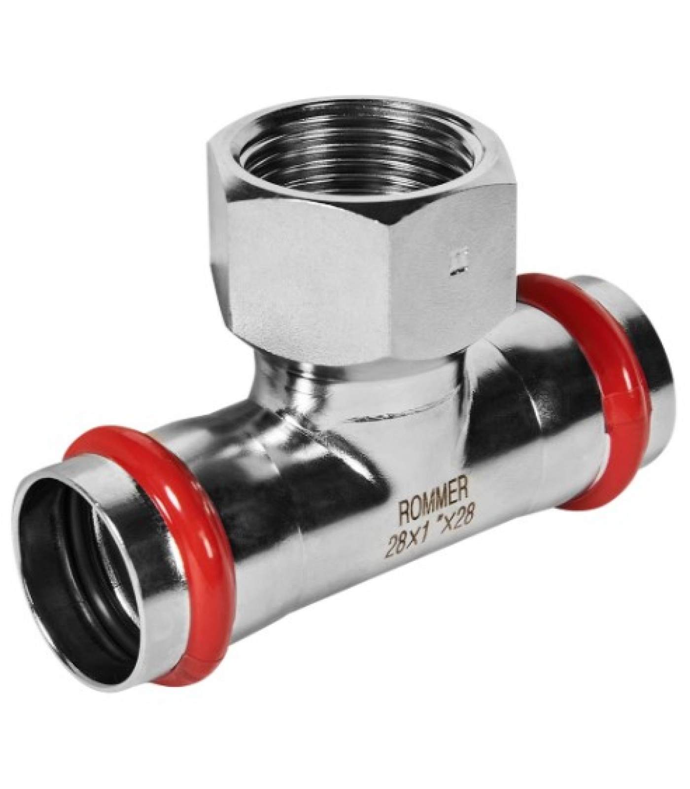 Тройник 28мм х 1"вр х 28мм Rommer пресс раструб раструб, для труб из нержавеющей стали