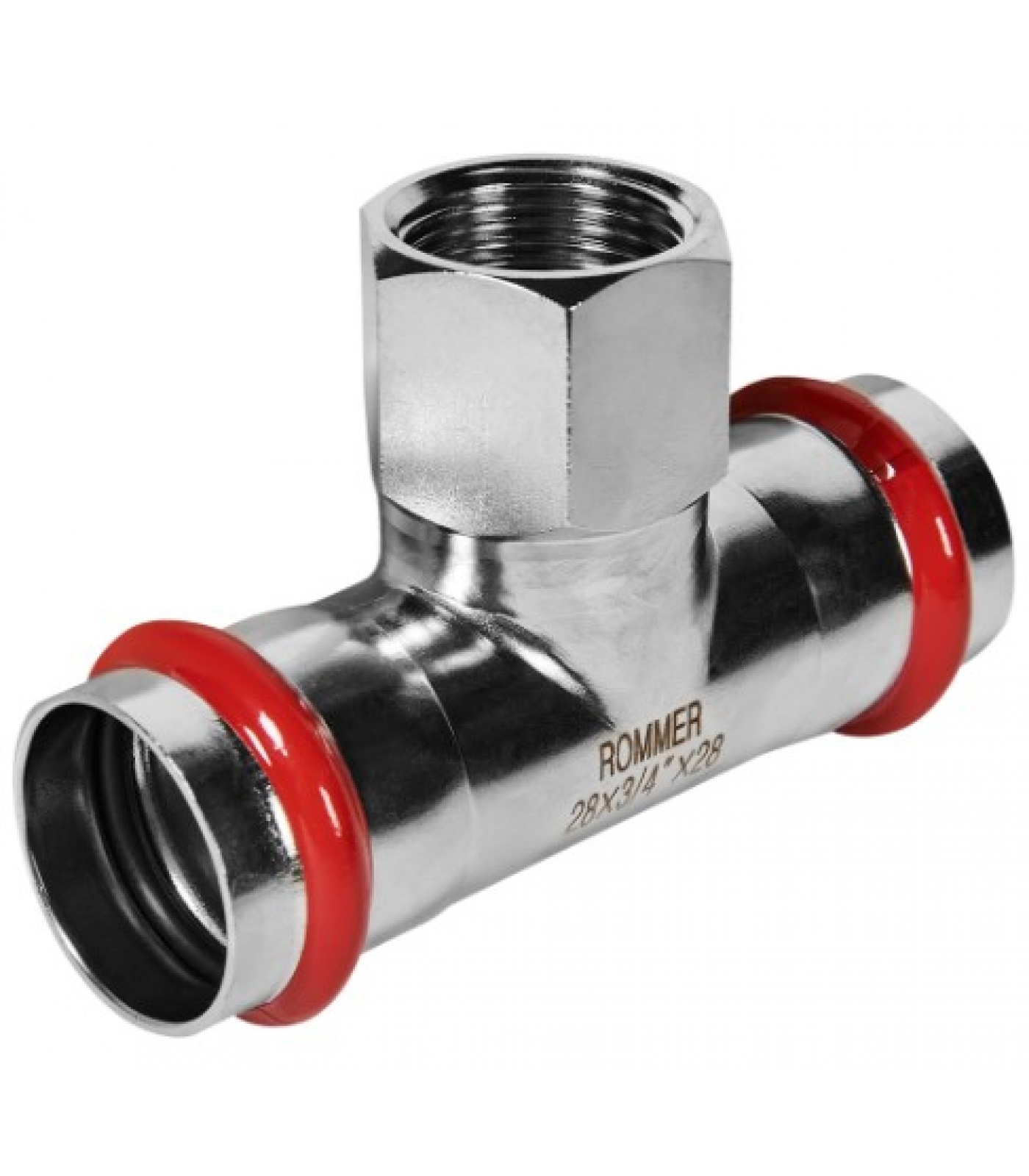 Тройник 28мм х 3/4"вр х 28мм Rommer пресс раструб раструб, для труб из нержавеющей стали