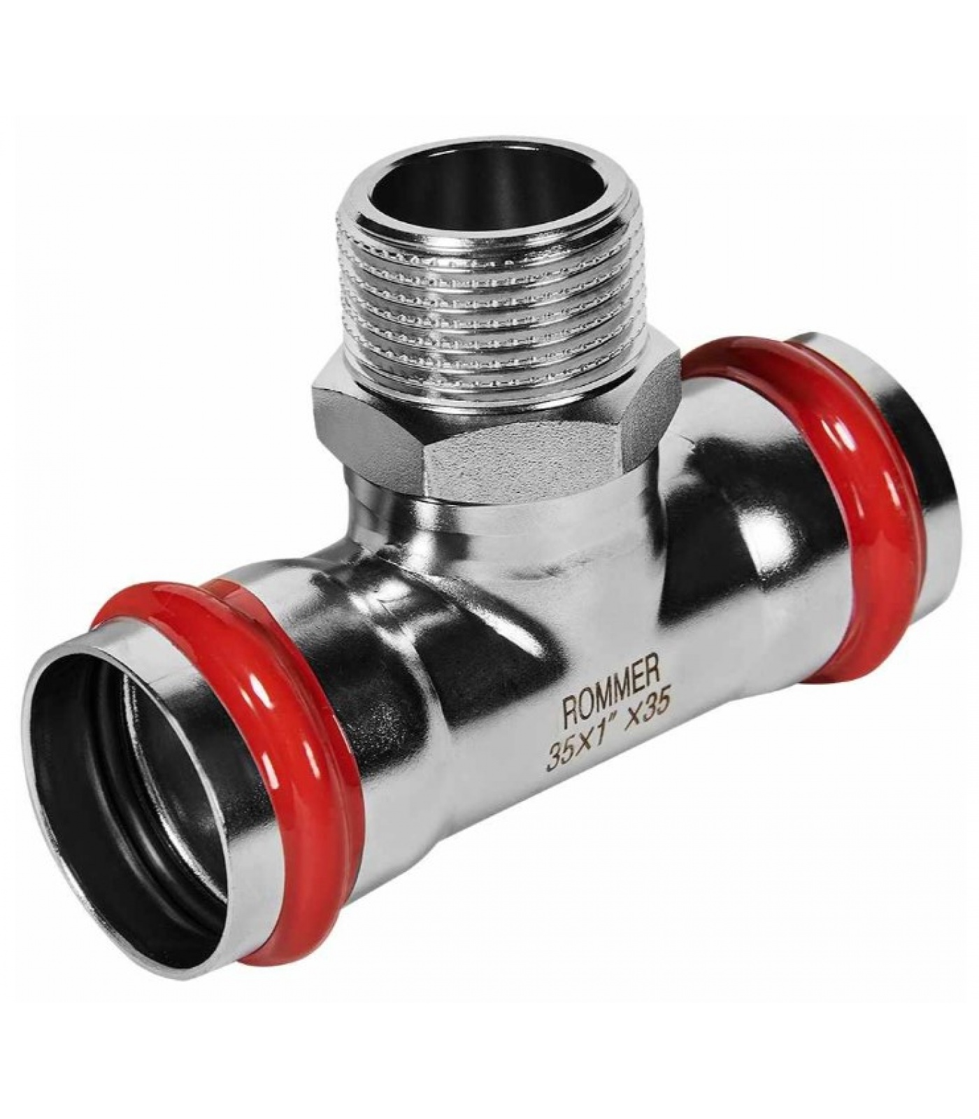 Тройник 35мм х 1"нр х 35мм Rommer пресс раструб раструб, для труб из нержавеющей стали