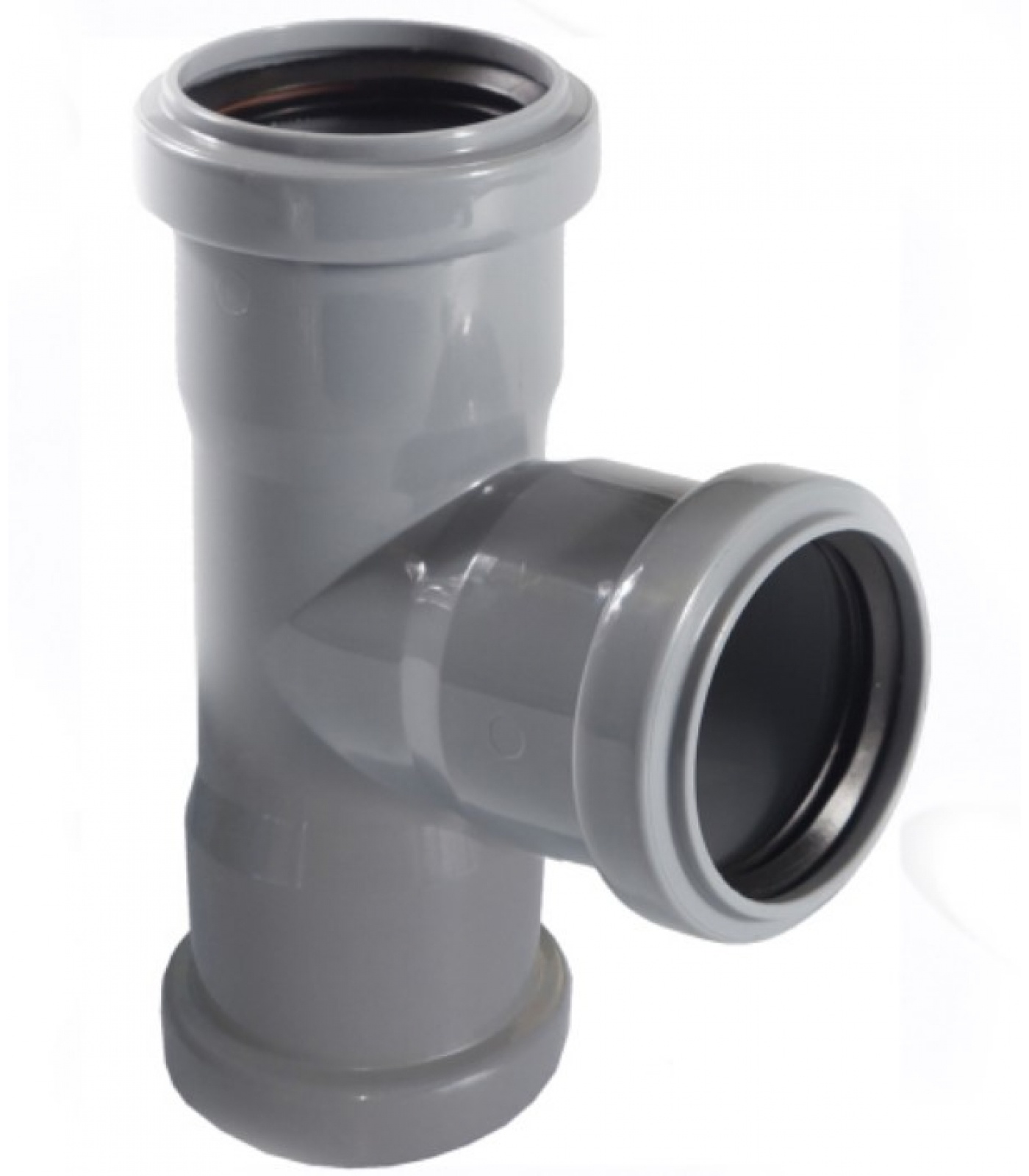 Тройник канализационный с тремя раструбами для трубы диаметром 50 мм. Имеет выход под трубу диаметром 50 мм под углом 87 градусов.