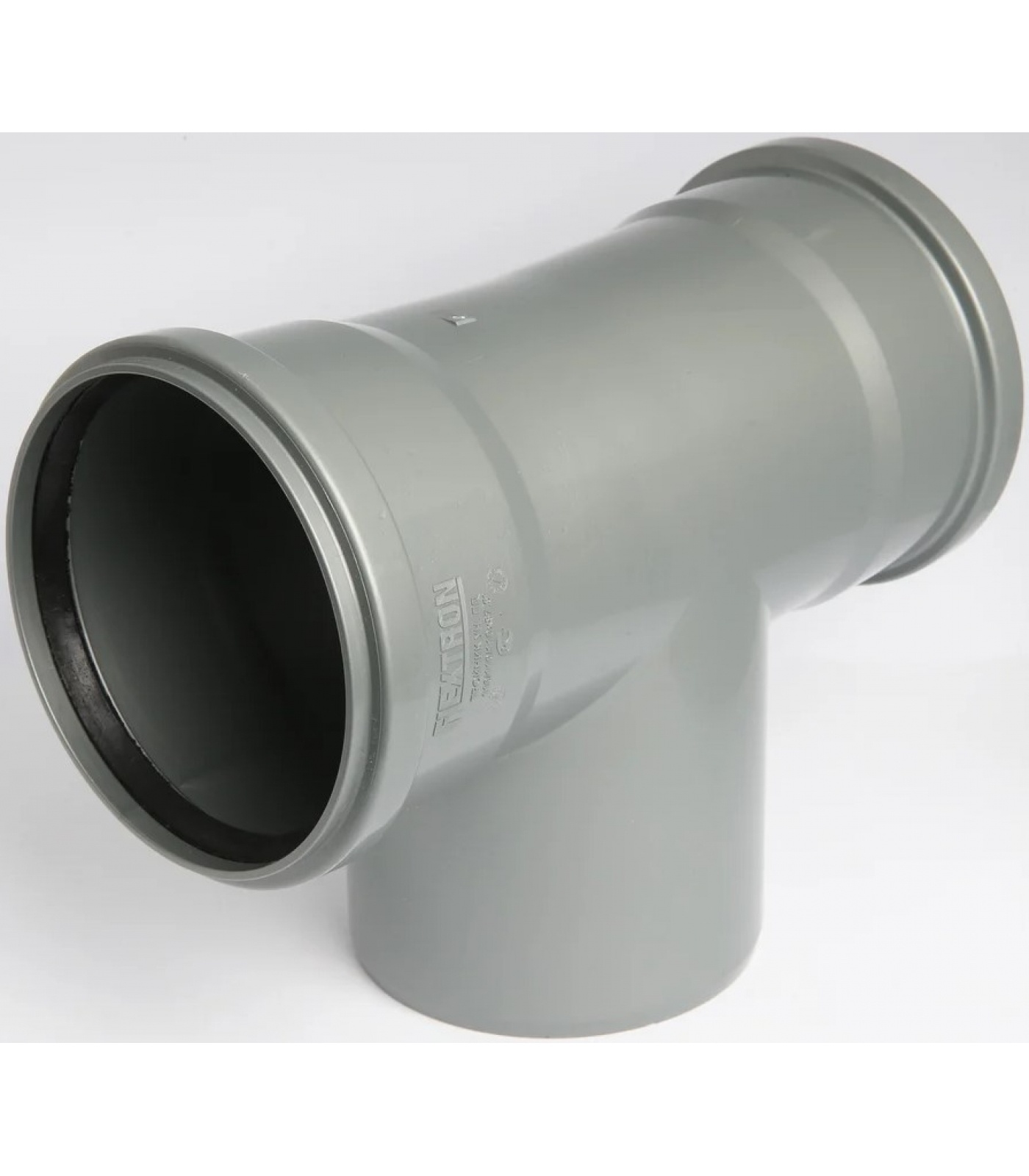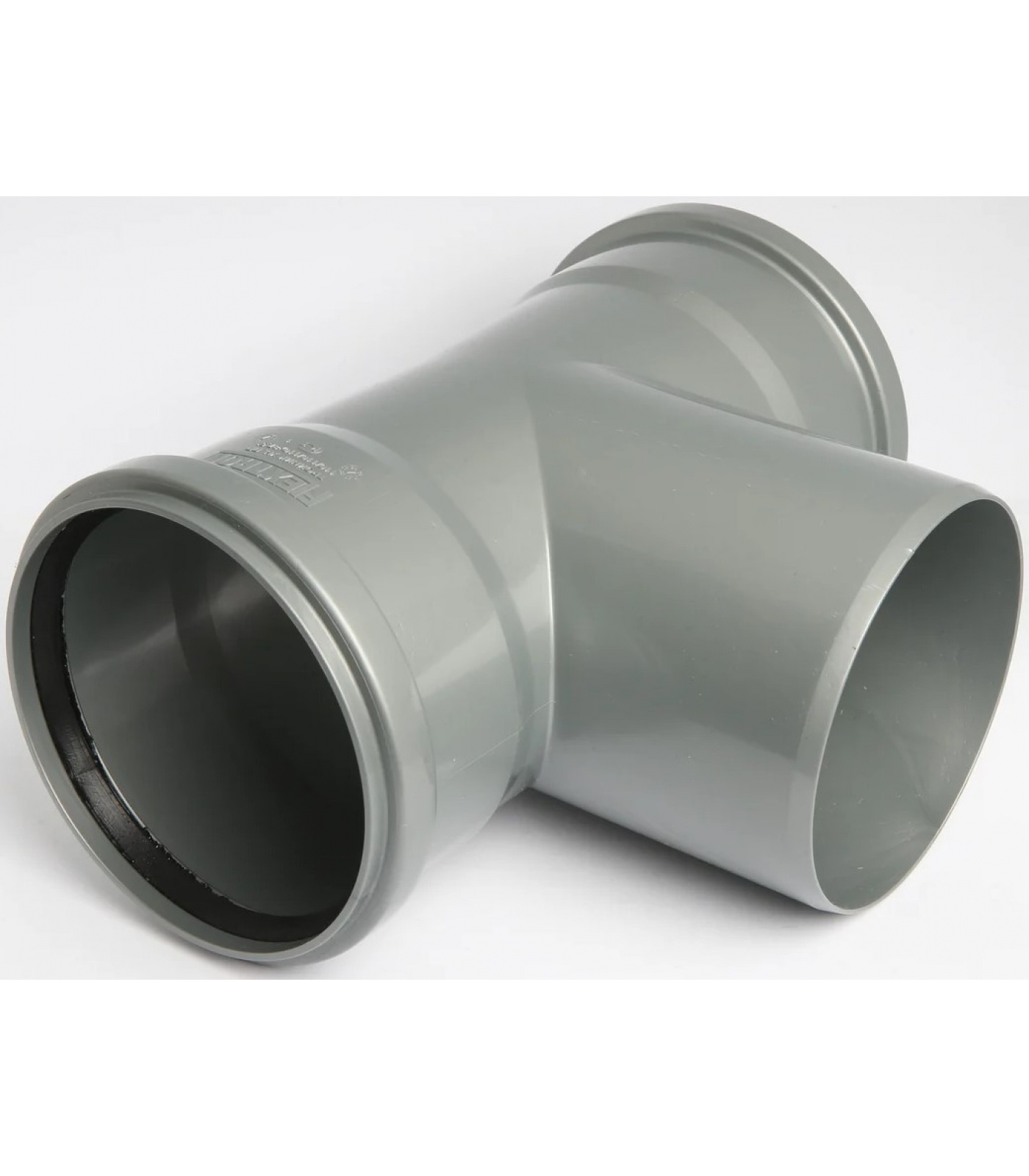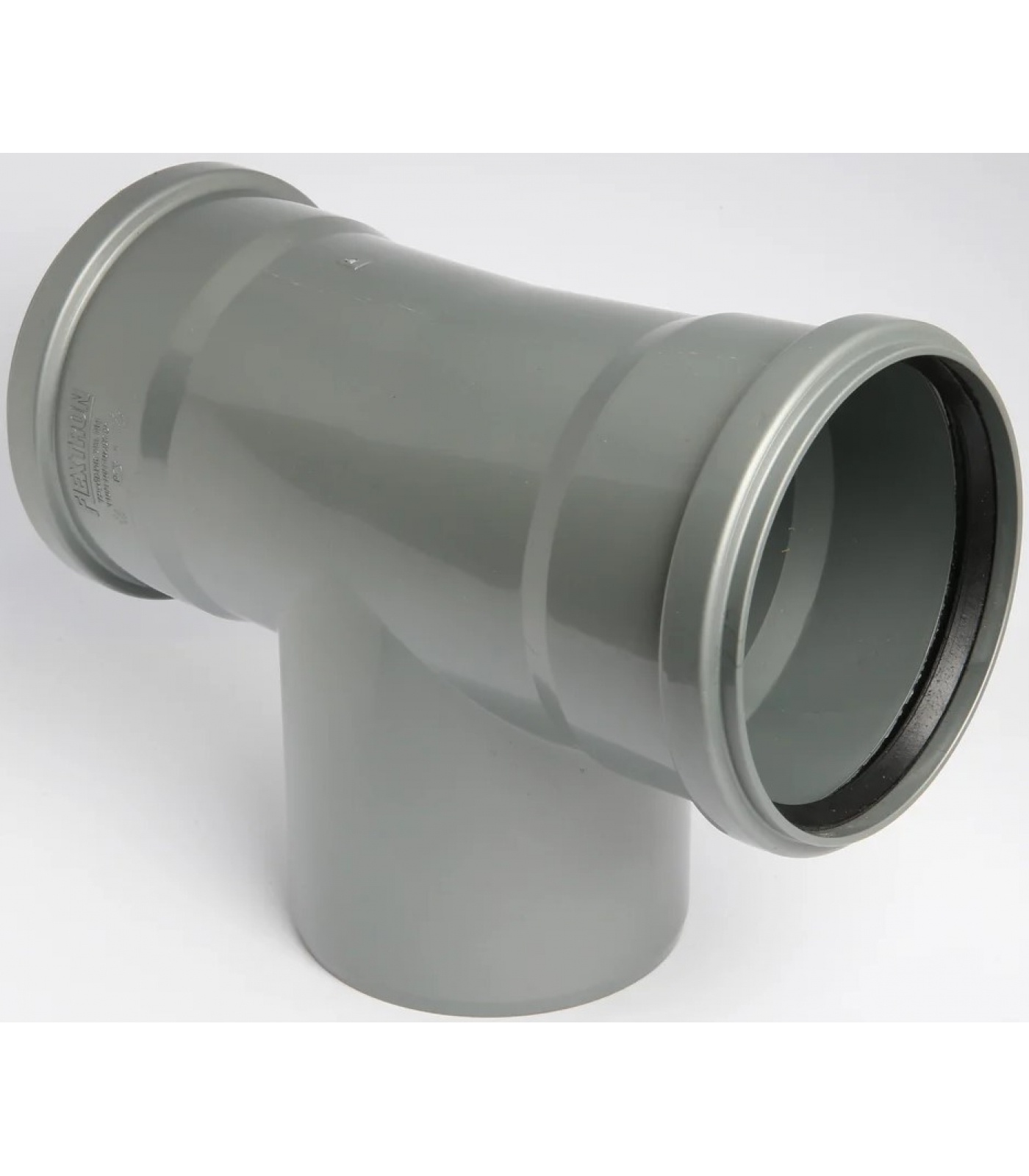 Тройник канализационный с двумя раструбами магистрали диаметром 110 мм, имеет патрубок диаметром 110 мм под углом 87 градусов.