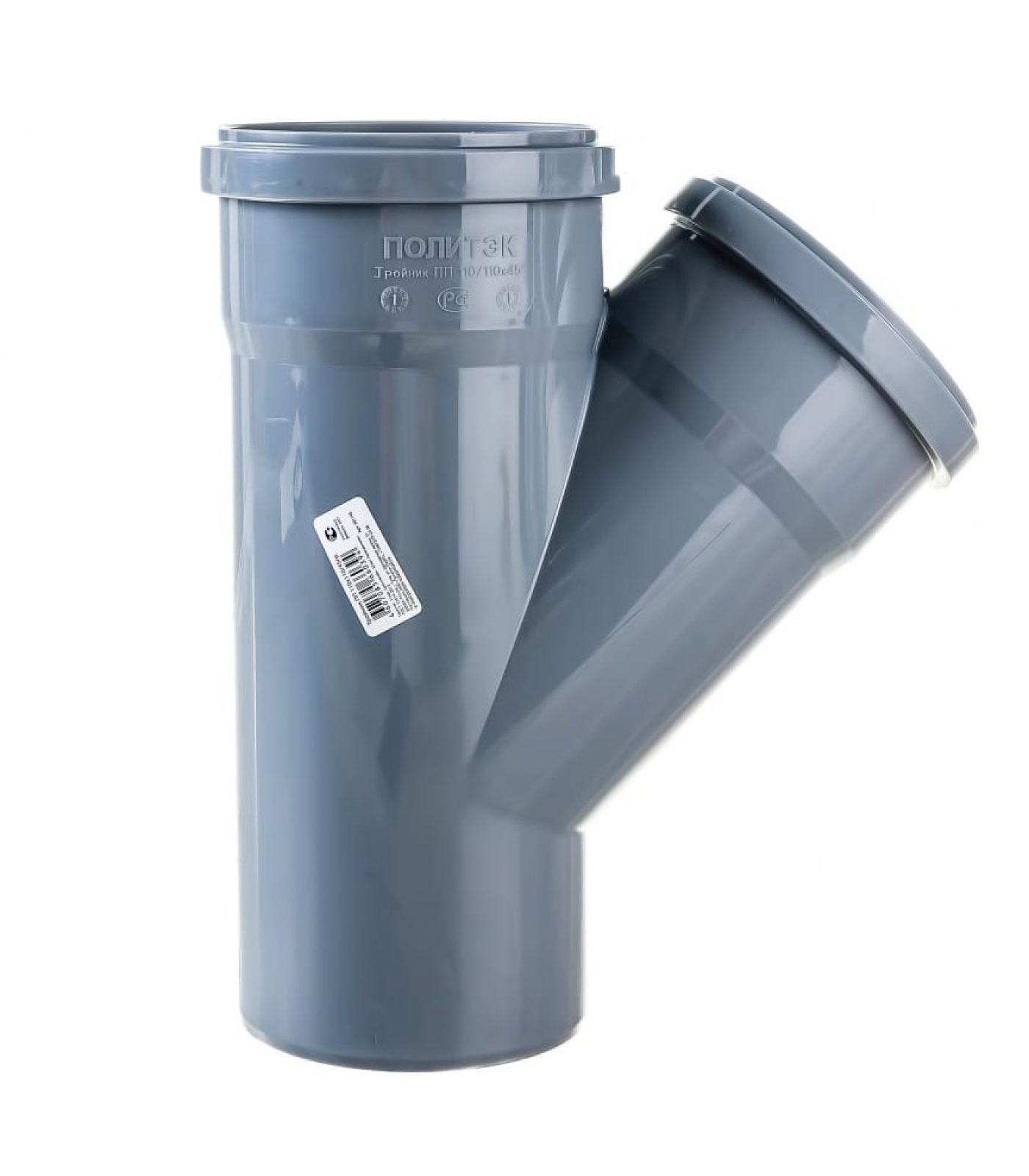Тройник полипропиленовый (ПП) для внутренней канализации диаметр 110мм с отводом 110мм под 45°