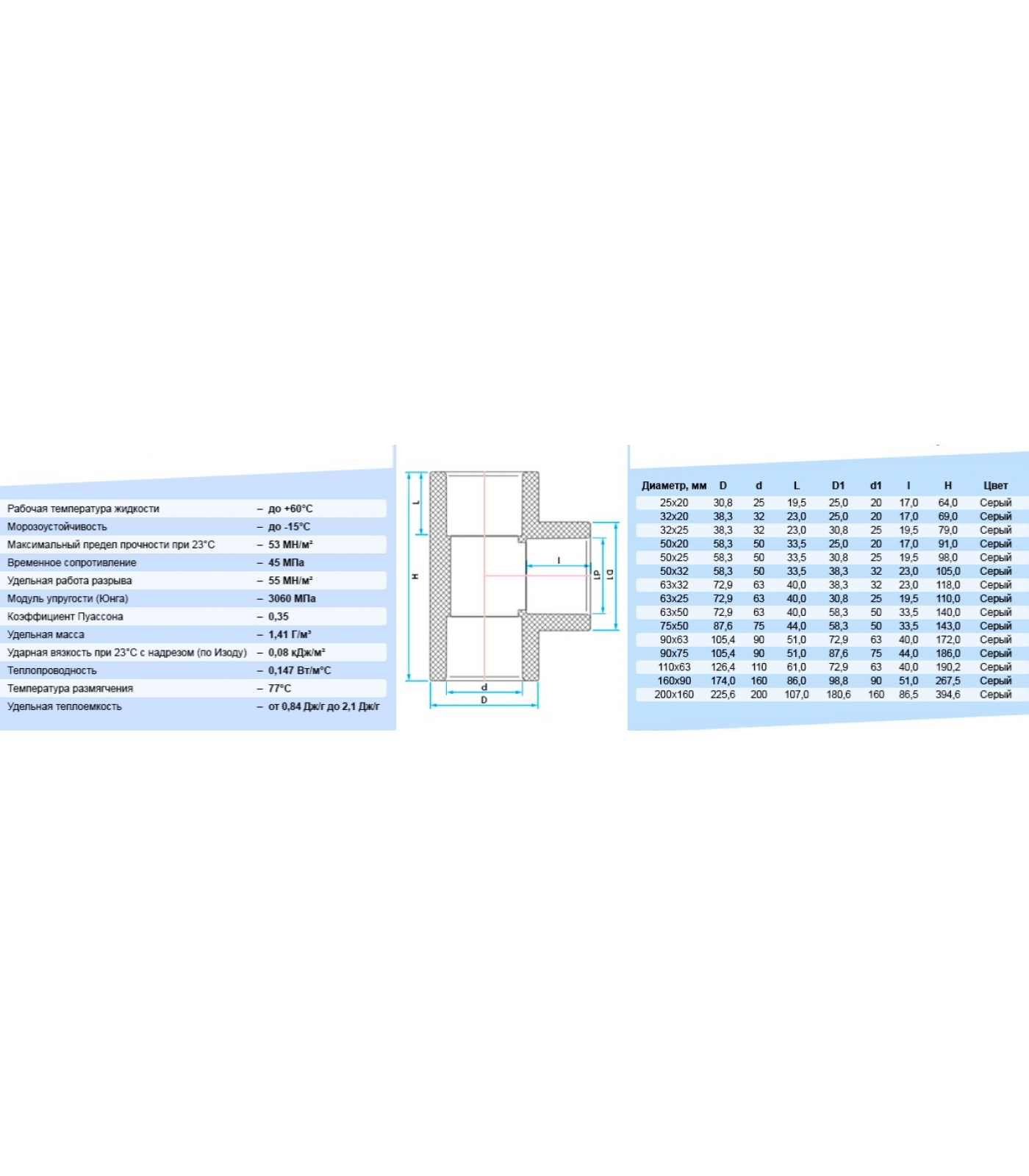 Тройник из непластифицированного поливинилхлорида PVC-U. Изделия из ПВХ подходят для транспортировки жидкостей с максимальной температурой до 60°C. При увеличении температуры рабочей жидкости предельное давление снижается.