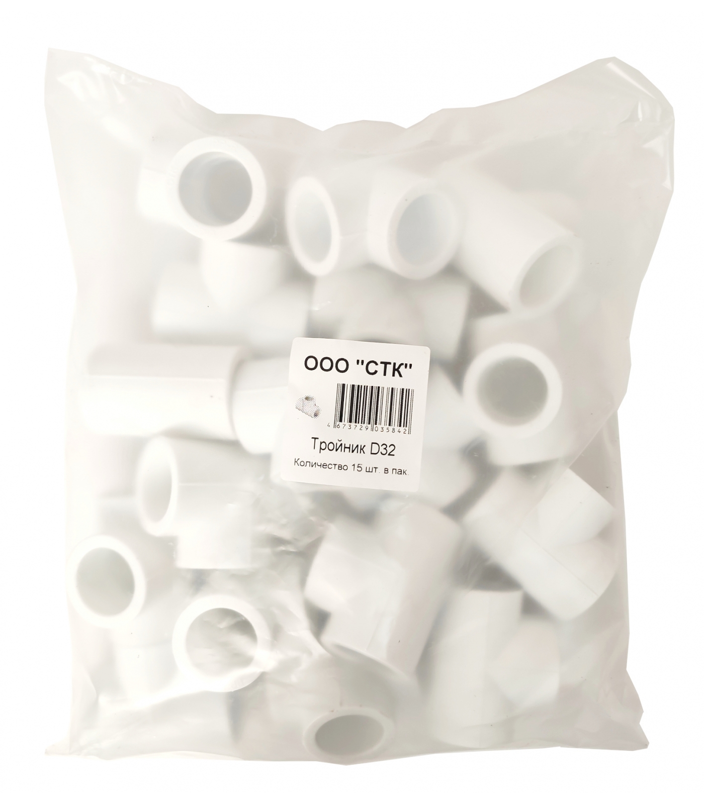 Тройник равнопроходной 32 мм СТК PP-R белый, пакет 15 шт