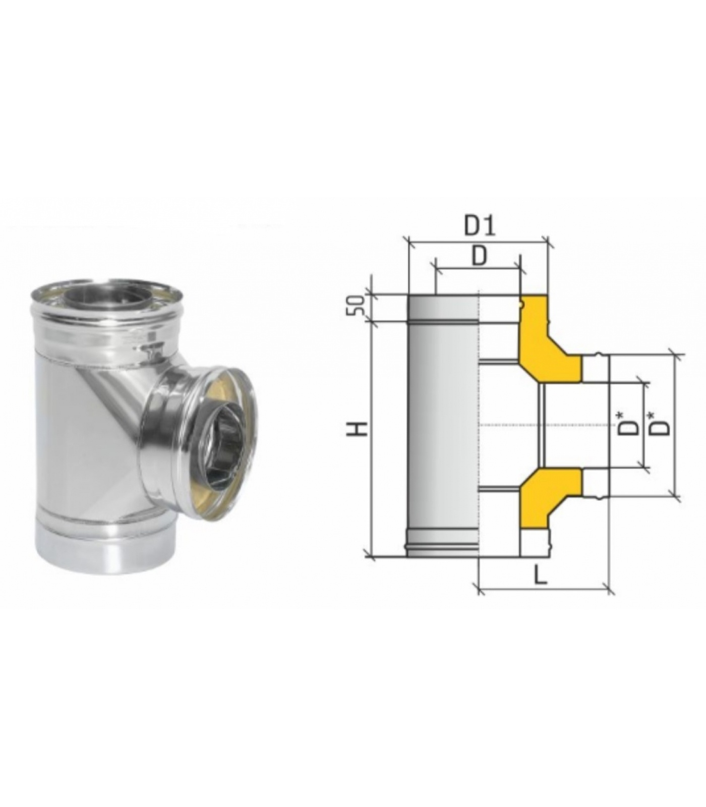 Отличительной особенностью тройника является отсутствие прямых углов на пути следования дымовых газов. Сэндвич-дымоходы для котлов, банных и отопительных печей из нержавеющей стали.