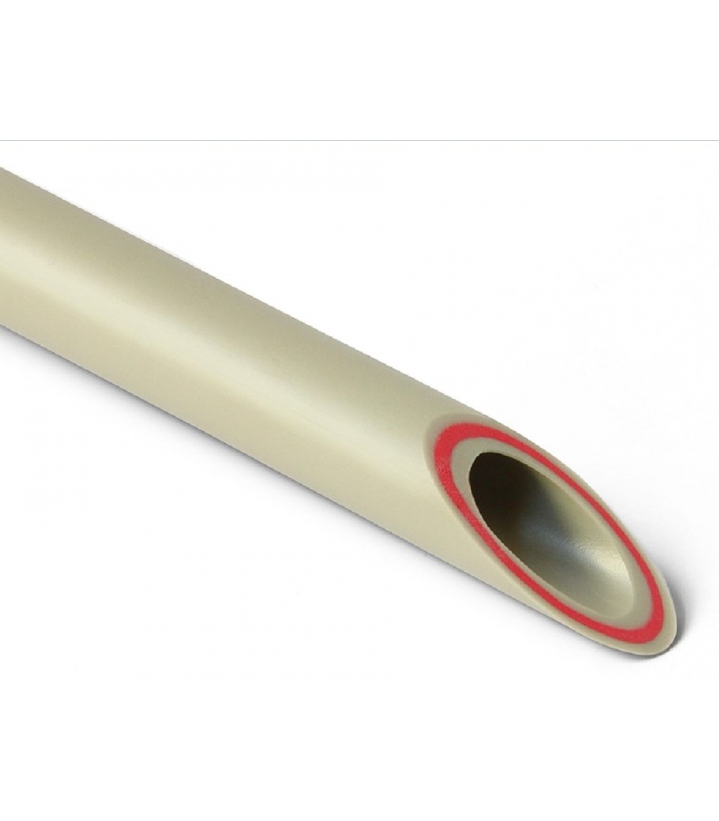 Наружный и внутренний слой выполнены из полипропилена рандом сополимера (PP-R). Внутренний слой выполнен из того же полипропилена с содержанием фибры >20% и 30%. Толщина слоев одинаковая. Внутренний слой содержит краситель красного цвета. Наличие стекловолоконной фибры снижает температурные деформации, но не защищает её от кислородной диффузии.