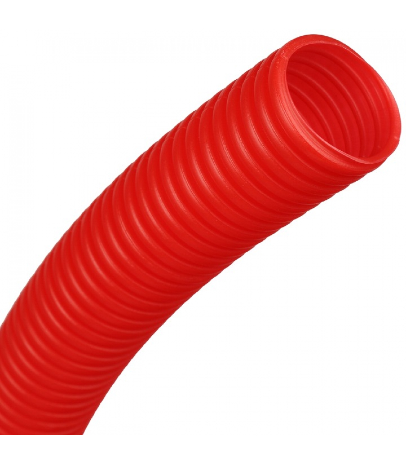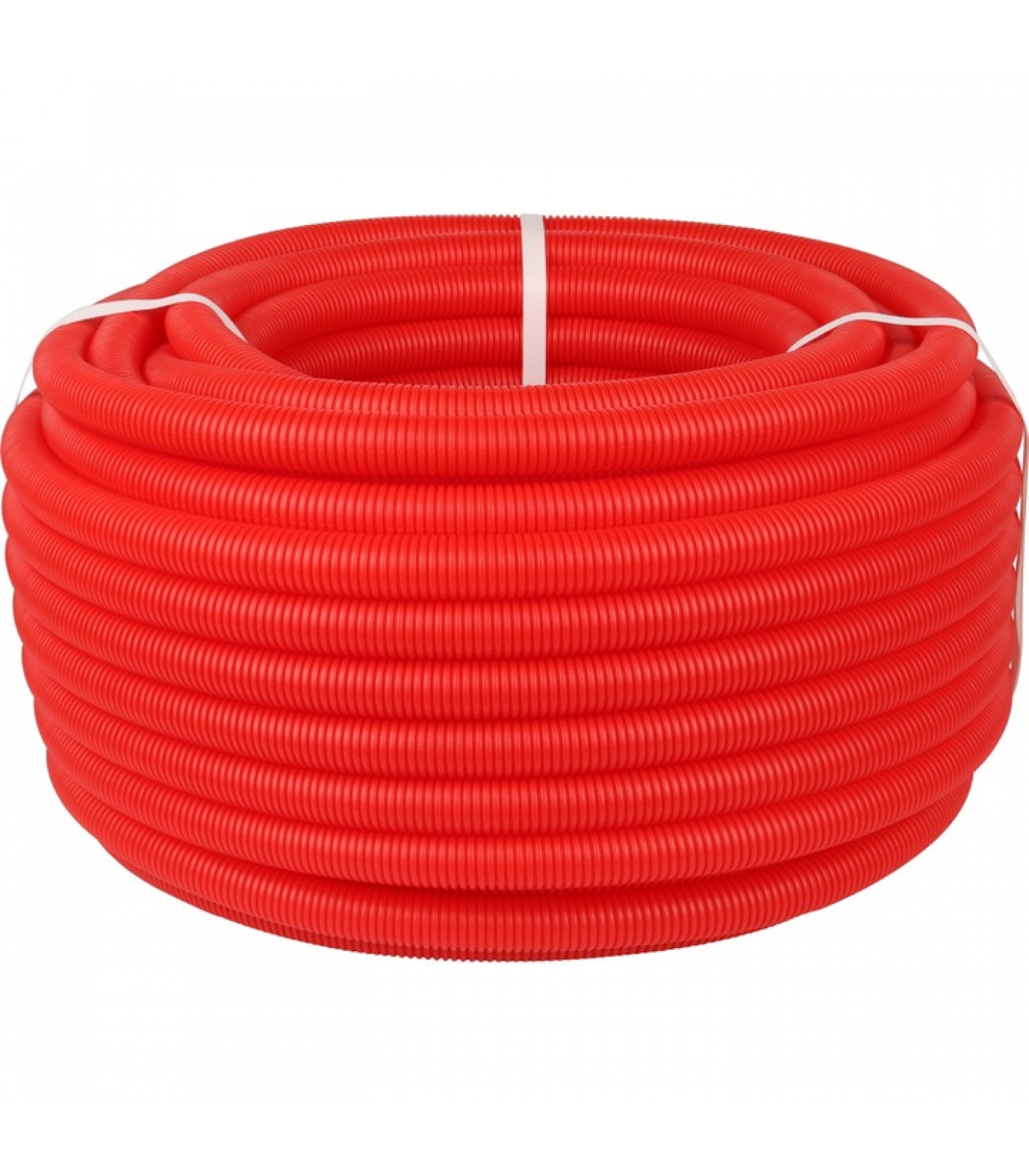Труба гофрированная ПНД, цвет красный, наружным диаметром 25мм для труб 20мм STOUT (50м) бухта