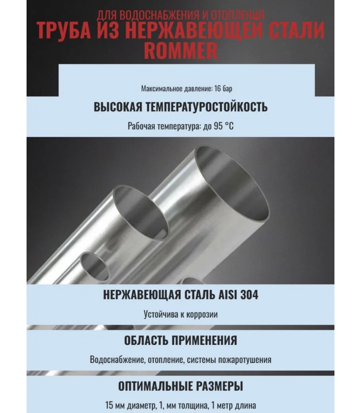 Сталь AISI 304 широко применяется в различных отраслях промышленности, включая пищевую и химическую. Благодаря относительно невысокой стоимости данный материал оптимален для использования в инженерных системах зданий. Трубы из нержавеющей стали характеризуются долговечностью, малыми гидравлическими потерями (благодаря этому квартирную разводку можно выполнить трубами наименьшего диаметра) и тепловым линейным удлинением, гигиеничностью, компактностью и эстетичностью.