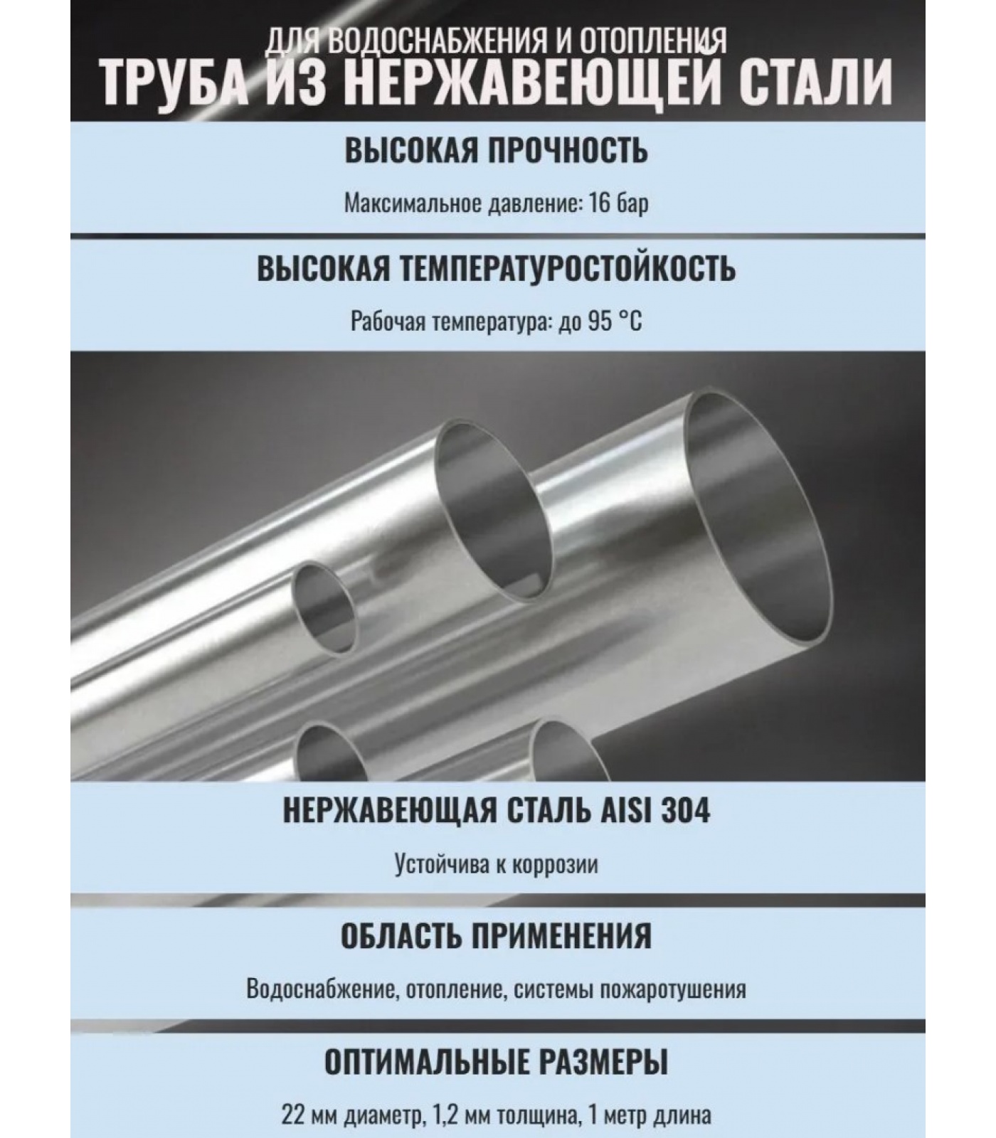 Трубы из нержавеющей стали характеризуются долговечностью, малыми гидравлическими потерями (благодаря этому квартирную разводку можно выполнить трубами наименьшего диаметра) и тепловым линейным удлинением, гигиеничностью, компактностью и эстетичностью.