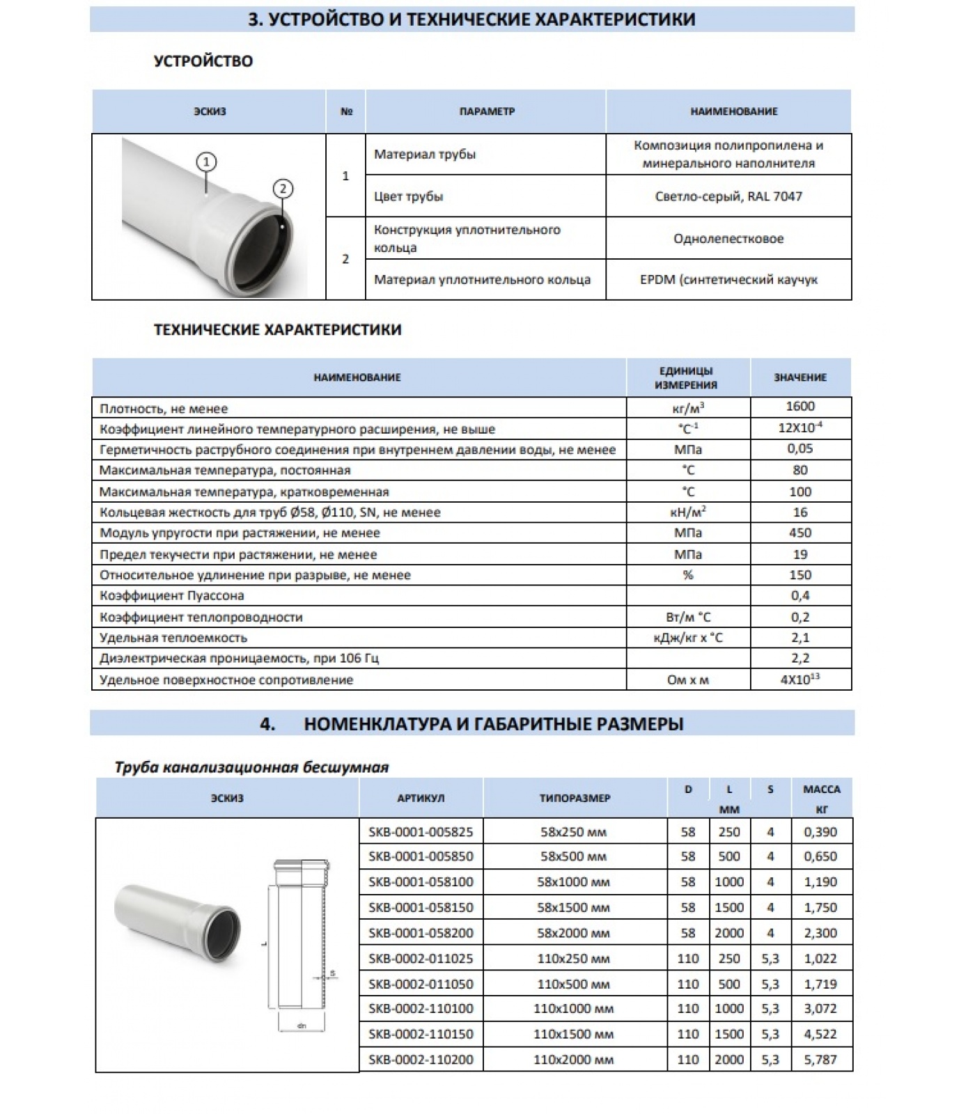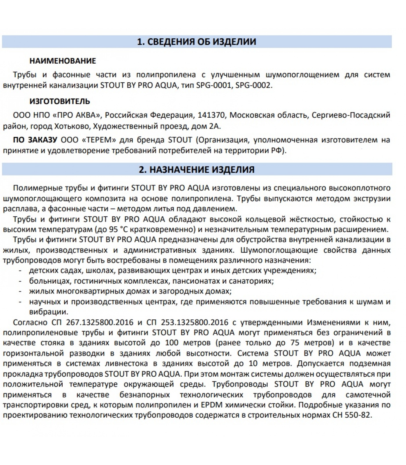 Трубы и фасонные части из полипропилена с улучшенным шумопоглощением для систем внутренней канализации STOUT BY PRO AQUA, тип SPG-0001, SPG-0002