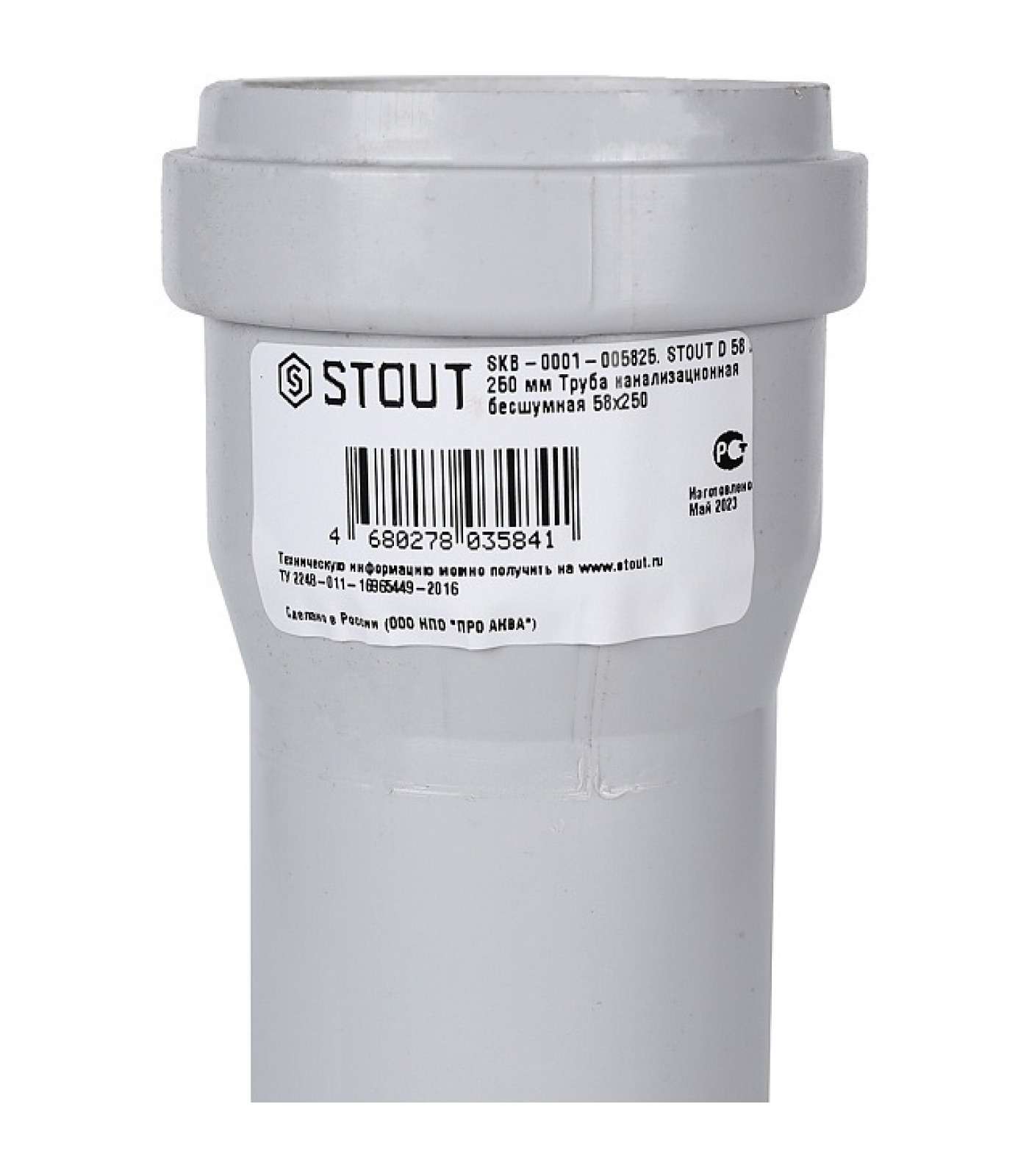 Труба канализационная бесшумная STOUT 58 х 250 мм