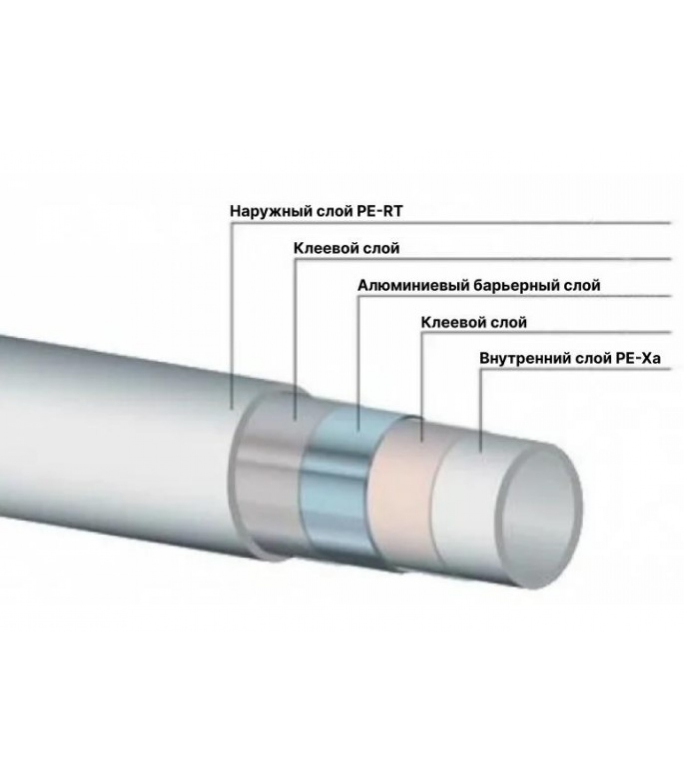Наружный слой выполнен из полиэтилена повышенной термостойкости PE-RT, внешняя поверхность трубы PE-Xa/Al/PE-RT серого цвета.