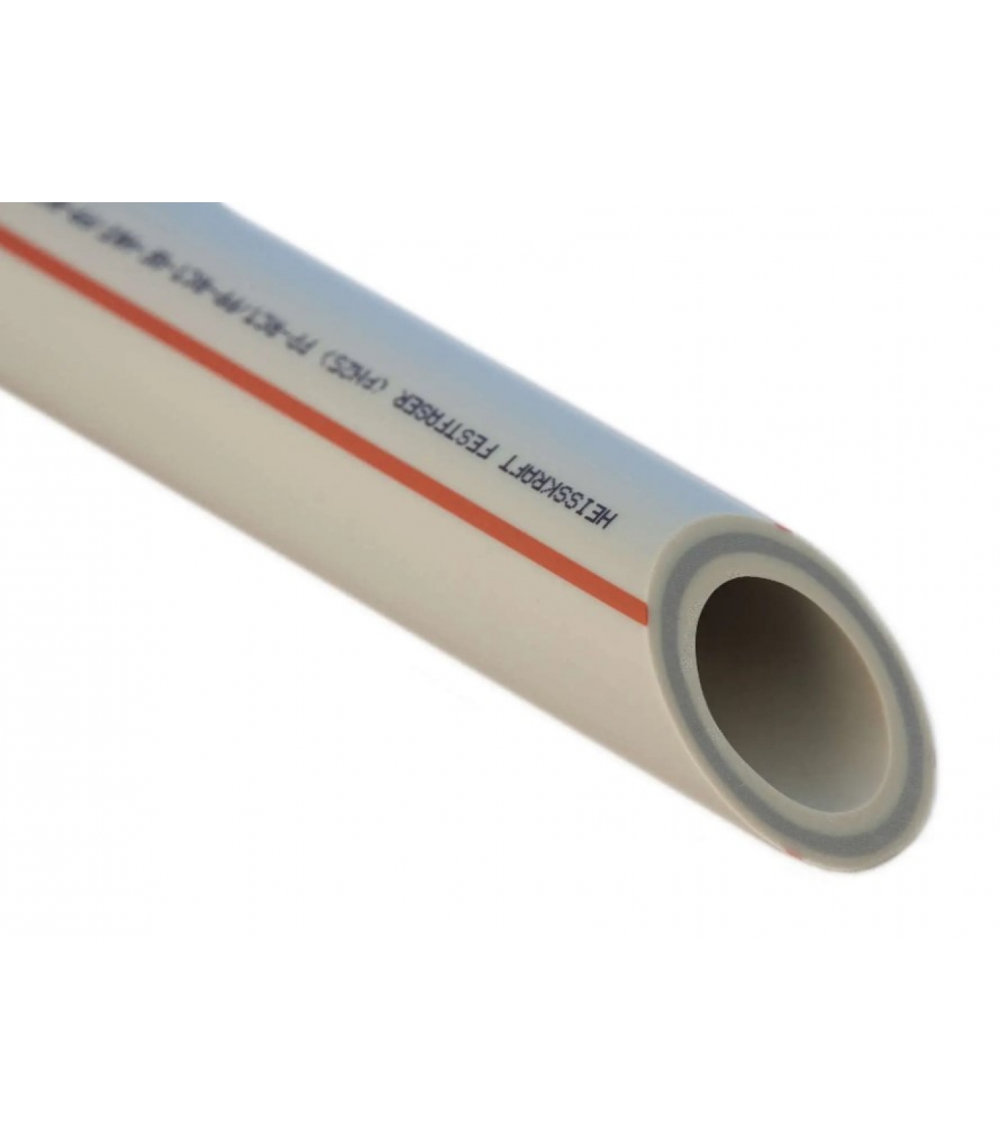 Труба многослойная напорная полипропиленовая S 2,5 SDR6 (PN30), армированная стекловолокном — для систем горячего водоснабжения и систем централизованного или децентрализованного отопления с рабочей температурой теплоносителя +95°С.