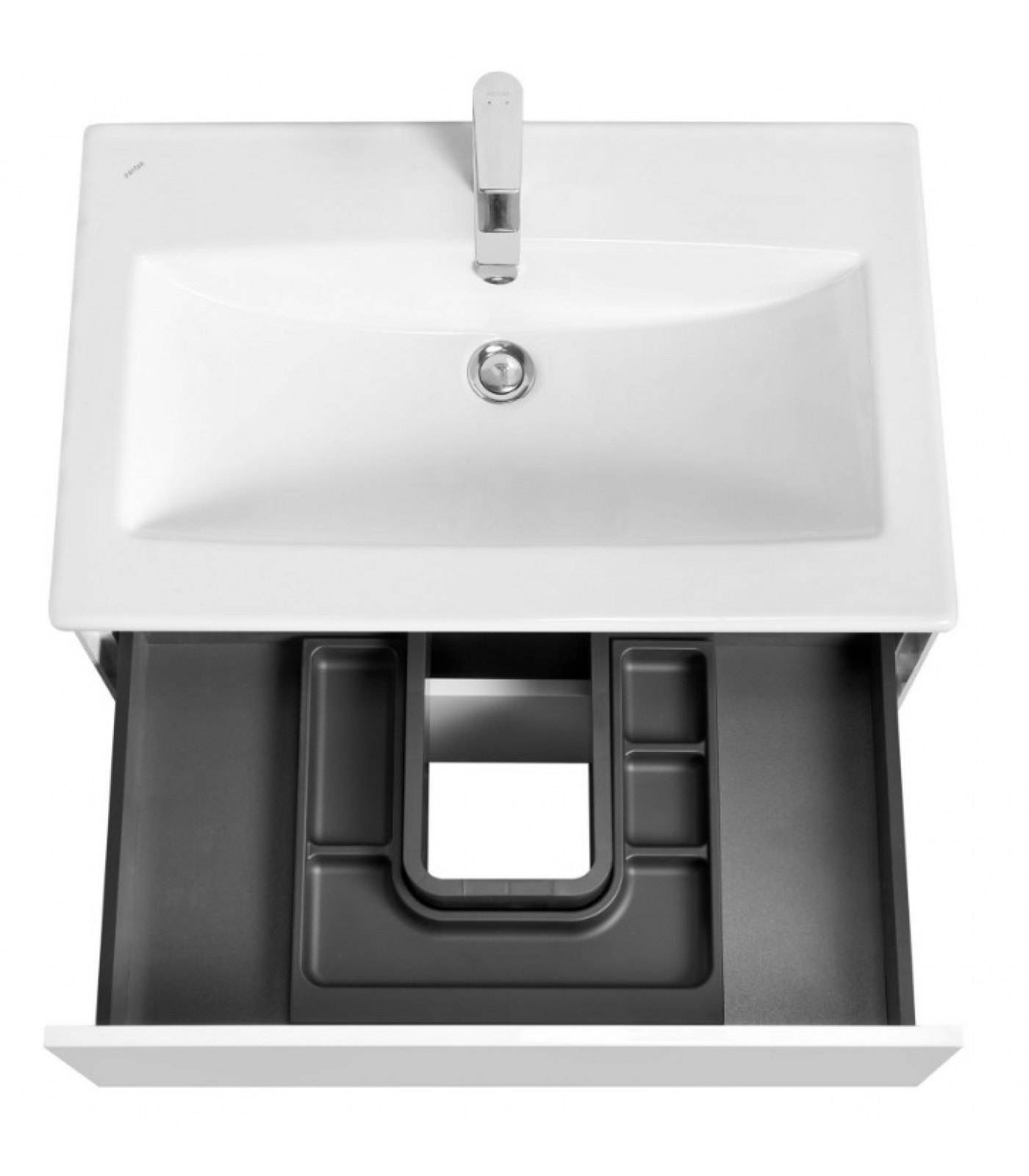 Все внутренние детали тумбы выполнены в цвете антрацит.
