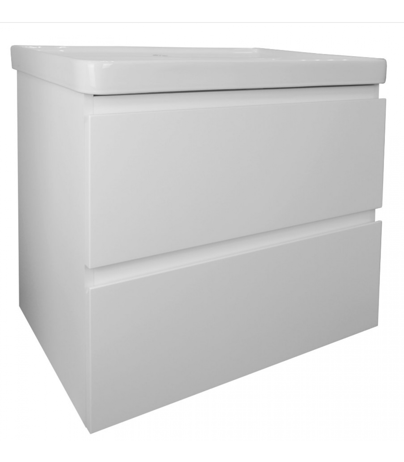 Тумба Azario Мила 60 подвесная в собранном виде изготовлена из влагостойкого высококачественного ЛДСП покрытого белой эмалью.