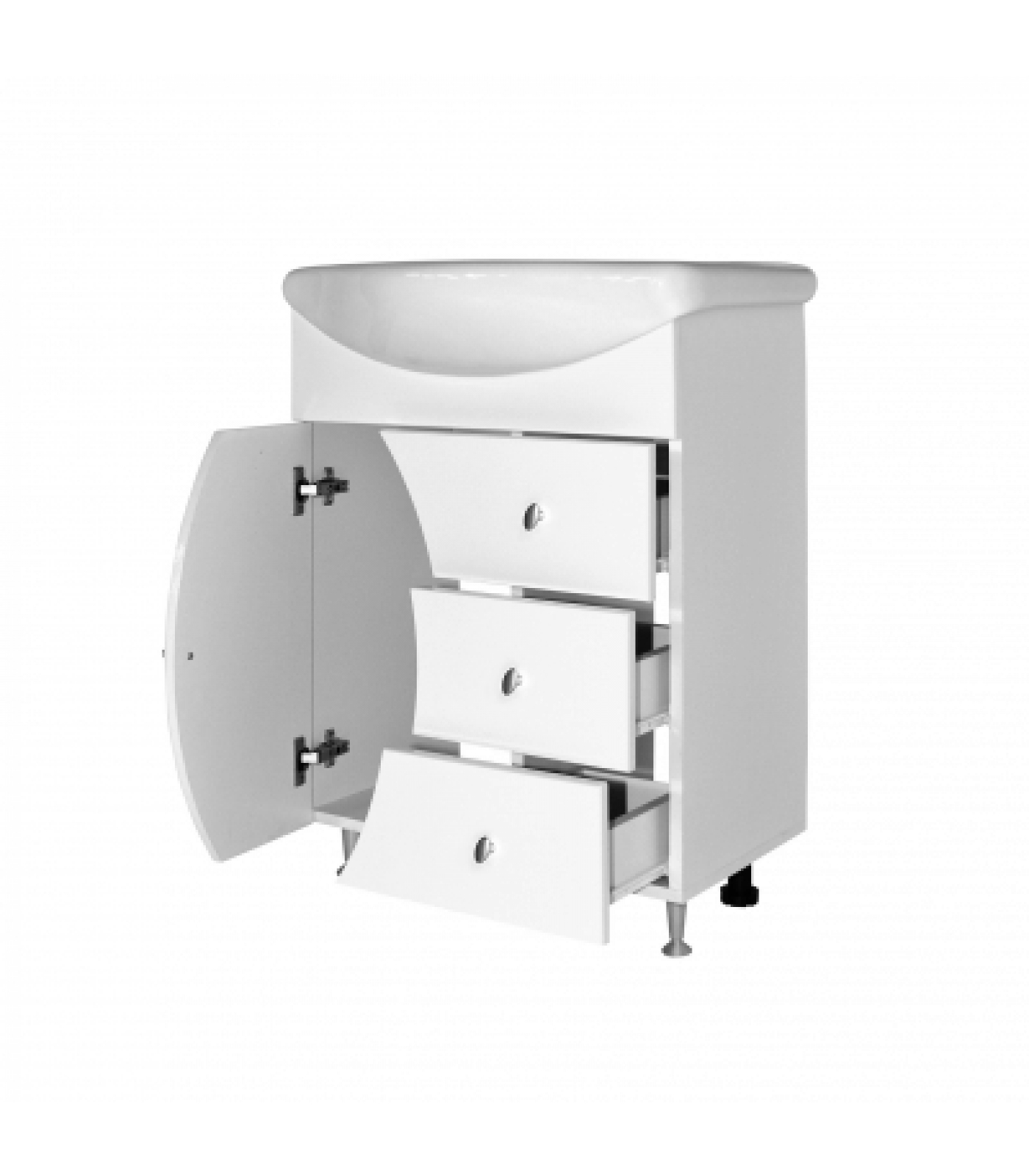 Компактная и функциональная тумба MixLine Парус 60 идеально впишется в дизайн Вашей ванной комнаты. Ниша, скрытая за дверцей и 3 выдвижных ящика позволят расположить внутри тумбы Ваши ванные принадлежности.
