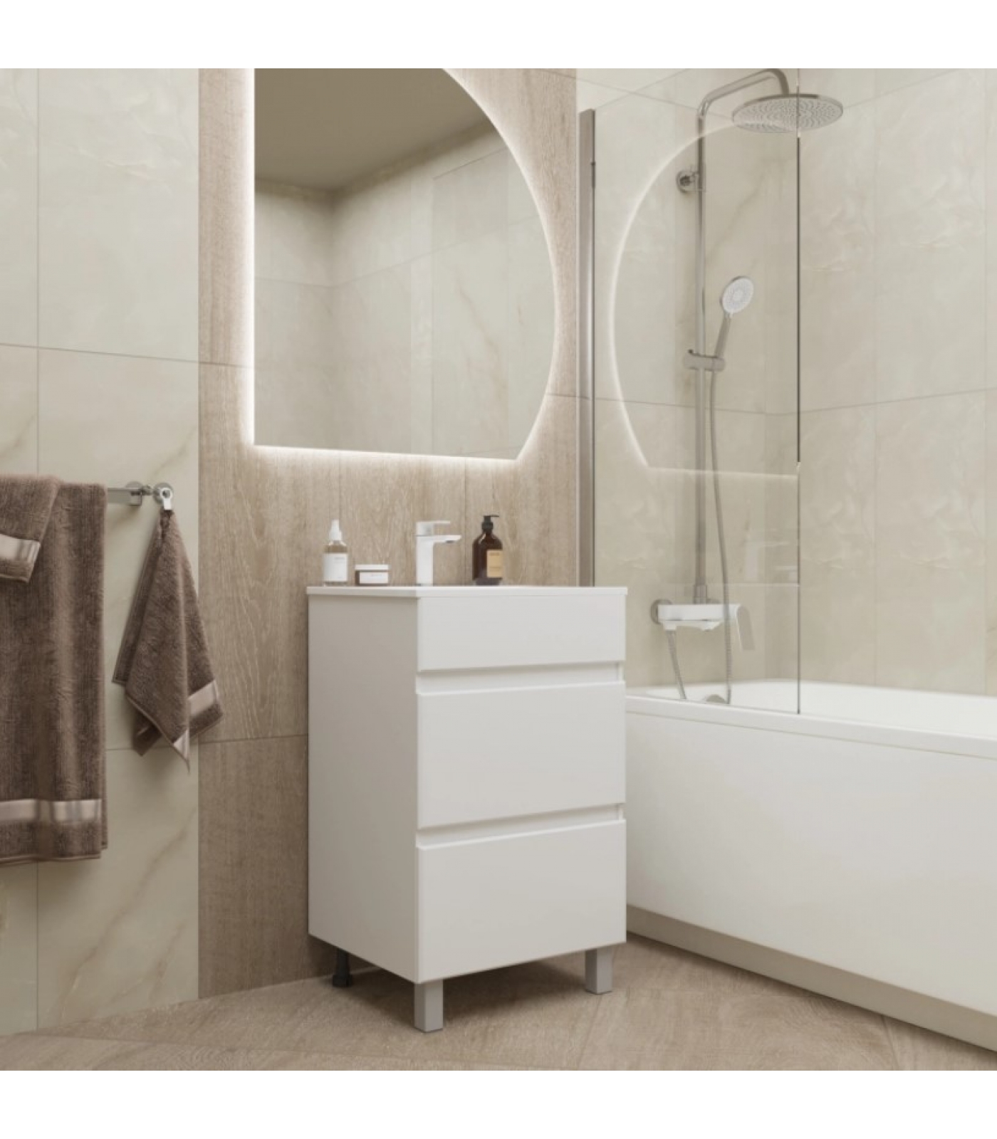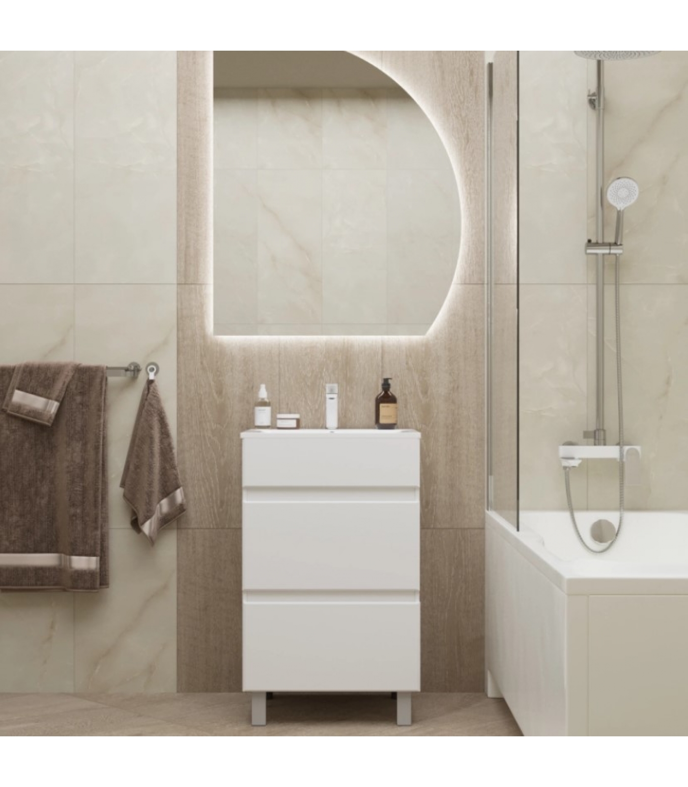 Тумба для ванной Mixline Брикс 50 белая, ПВХ, напольная, под раковину Sanita Luxe Breeze 50
