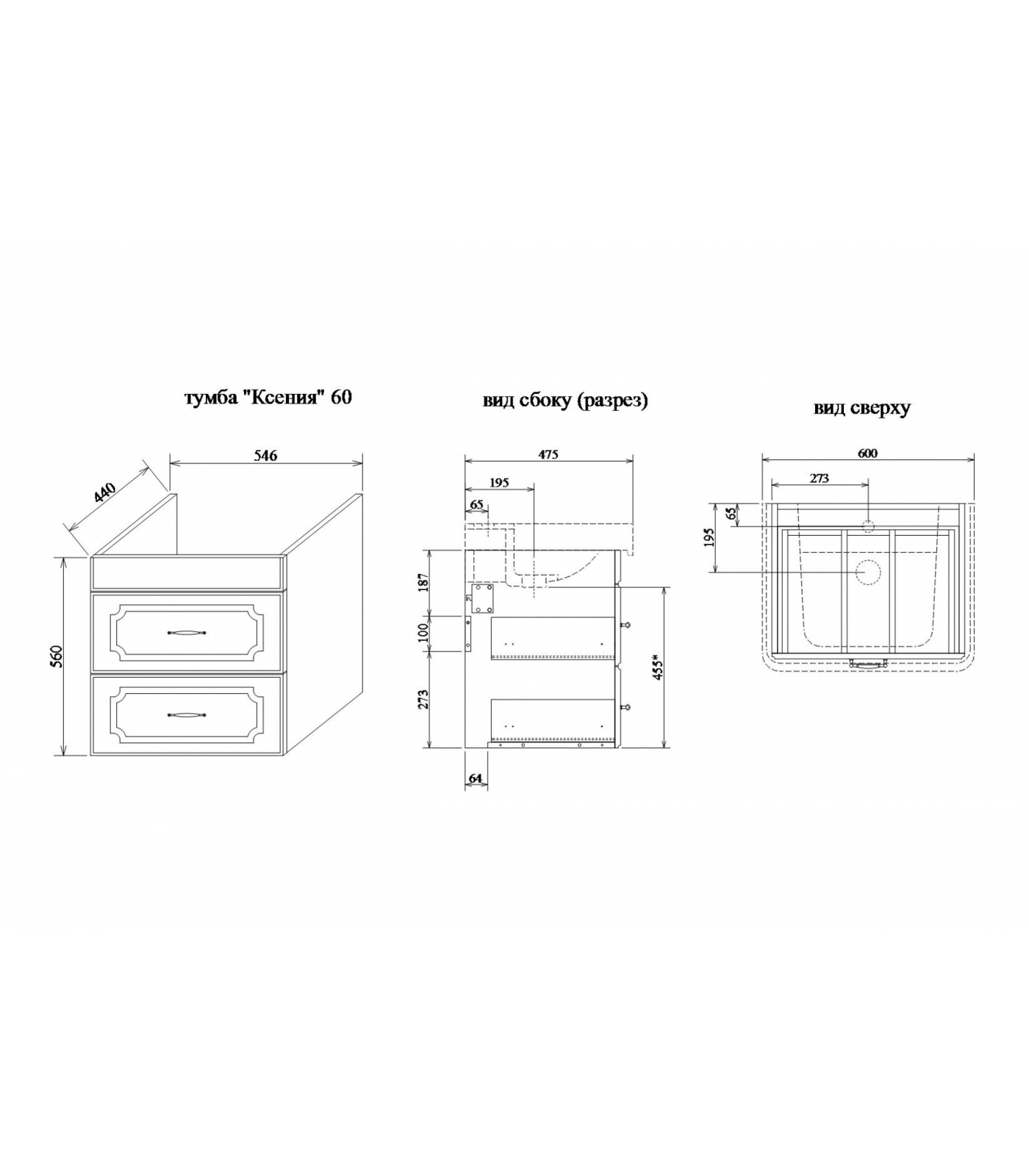 Тумба Ксения-60 под раковину Тигода-60/Q60 подвесная Sanflor