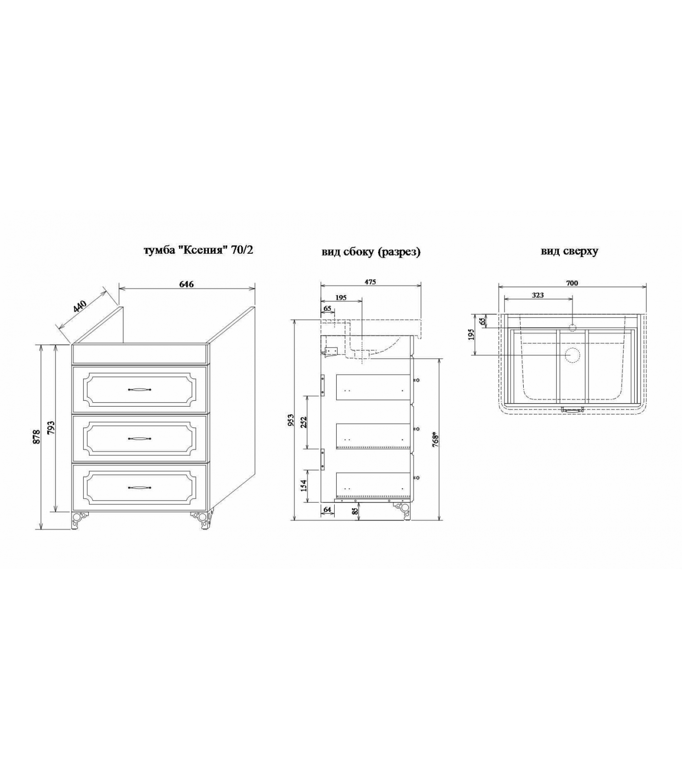 Фасад изготовлен из влагостойкого ЛМДФ с фрезерованным рисунком на поверхности. Ящики на шариковых направляющих. Ручки с керамическими вставками подчеркивают классический вид тумбы. Она впишется в самый изысканный интерьер.