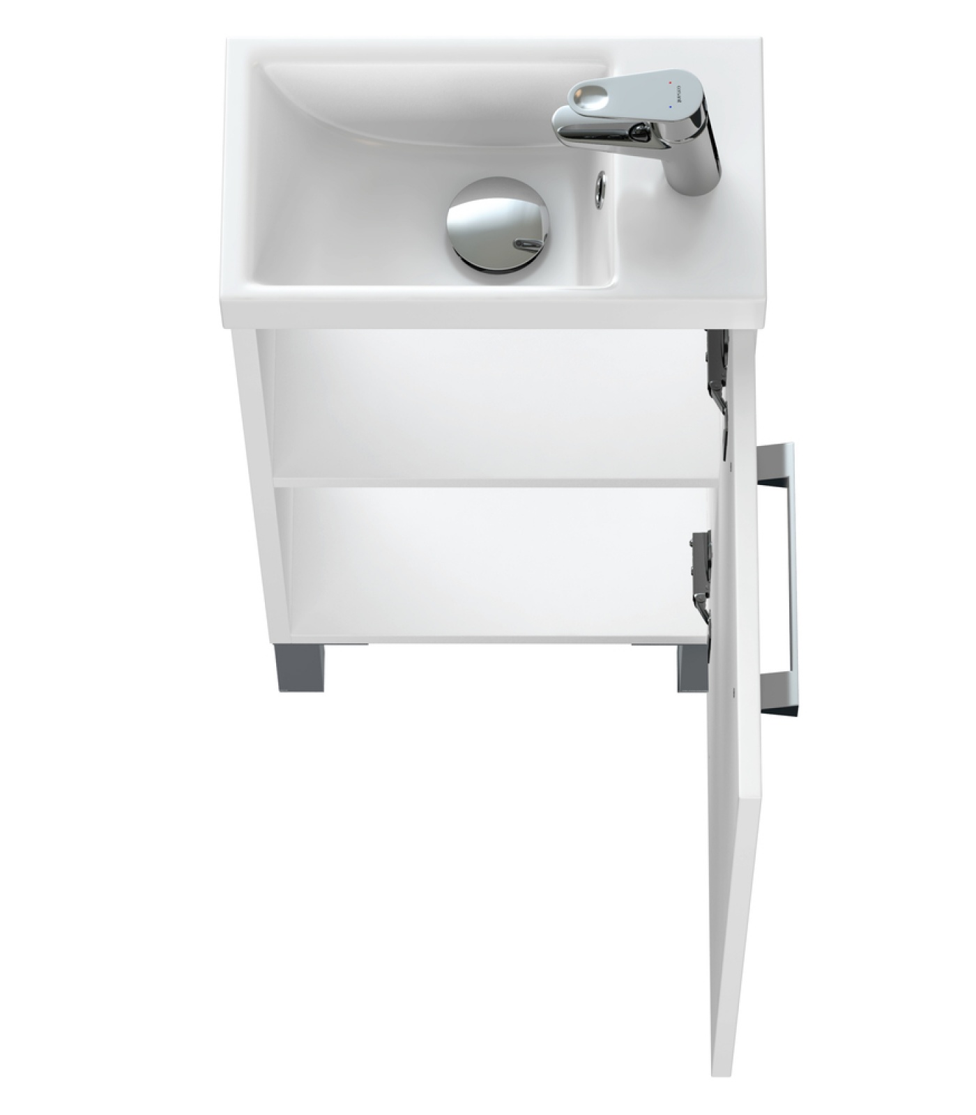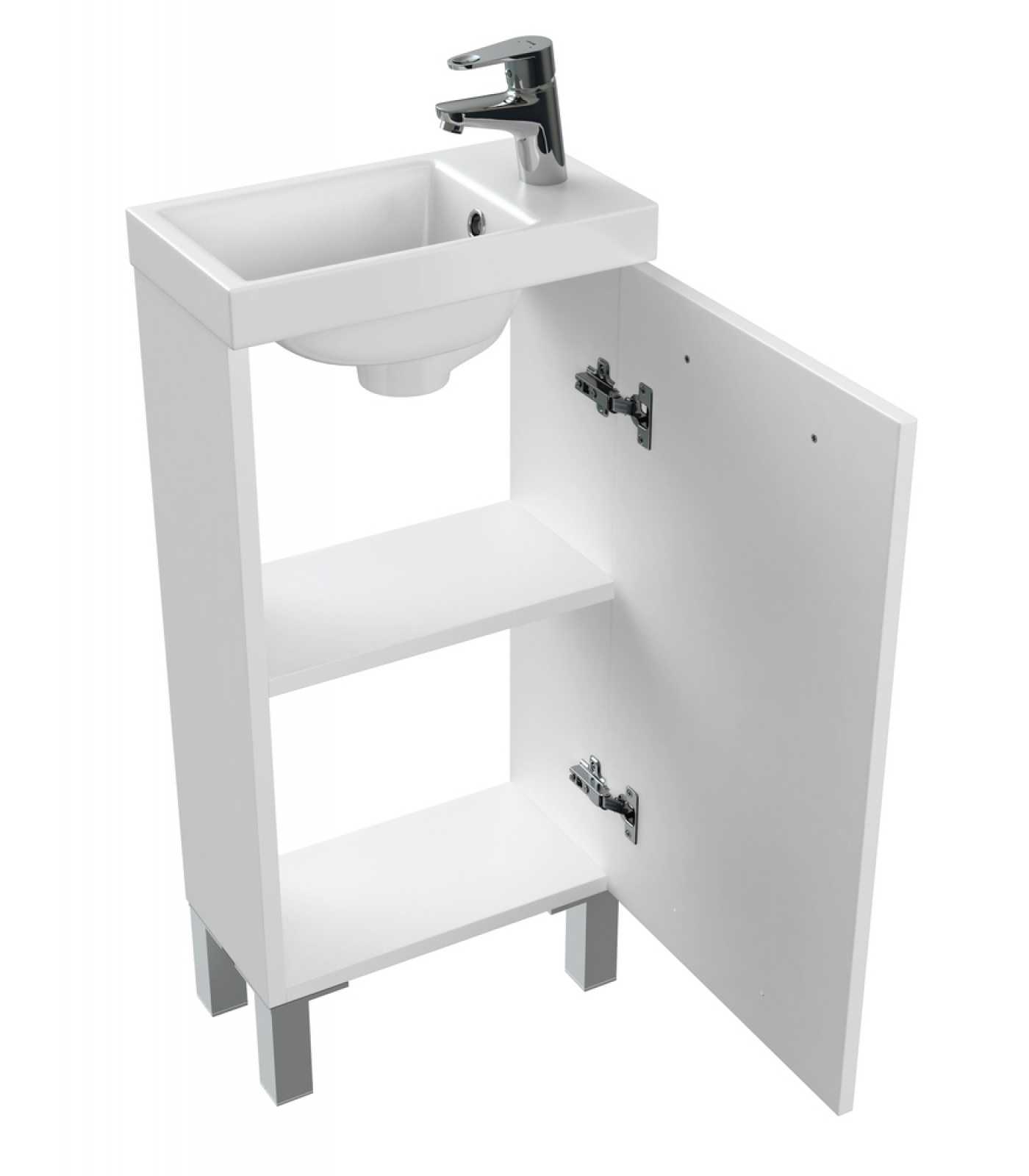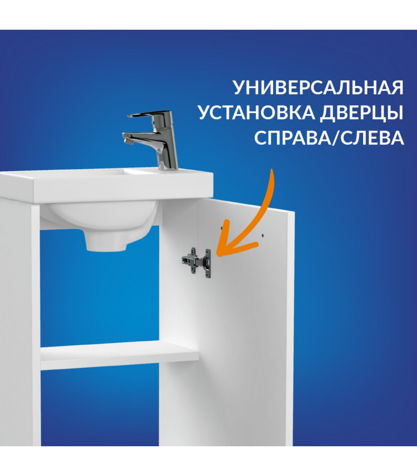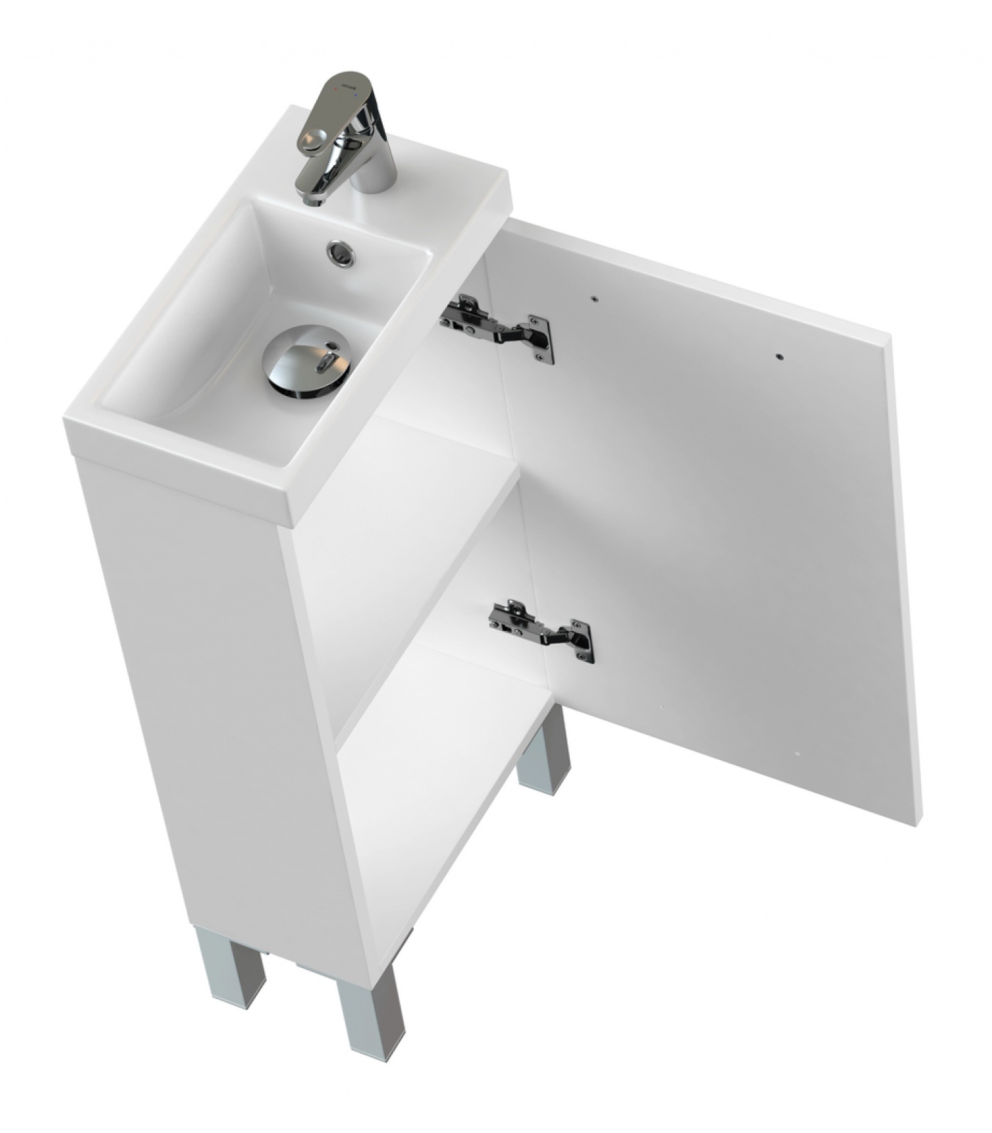 Компактная тумба под раковину. Идеально подойдет для размещения в небольших санузлах и туалетных комнатах. Тумбу можно разместить как на ножках, так и подвесить на стенку. К тумбе рекомендуем раковины СOMO40 или MODUO40.