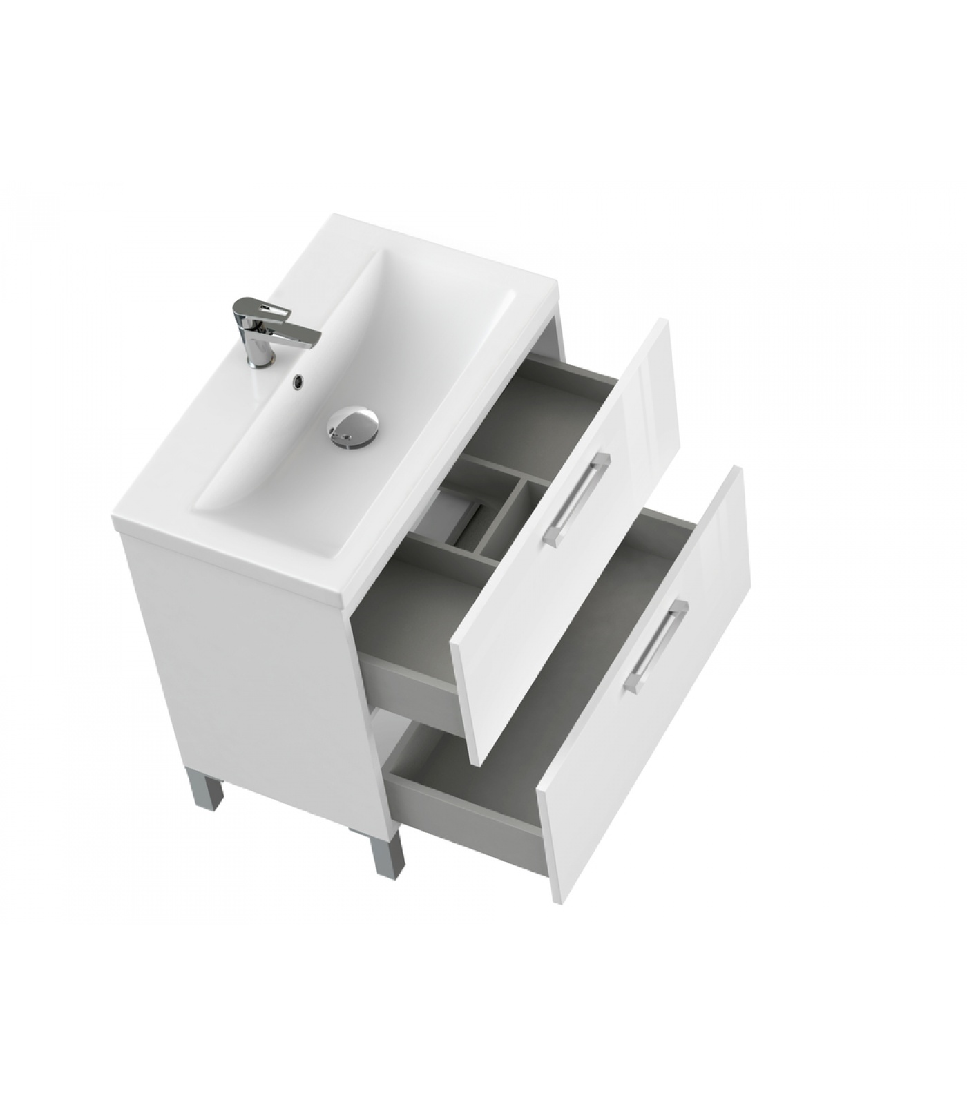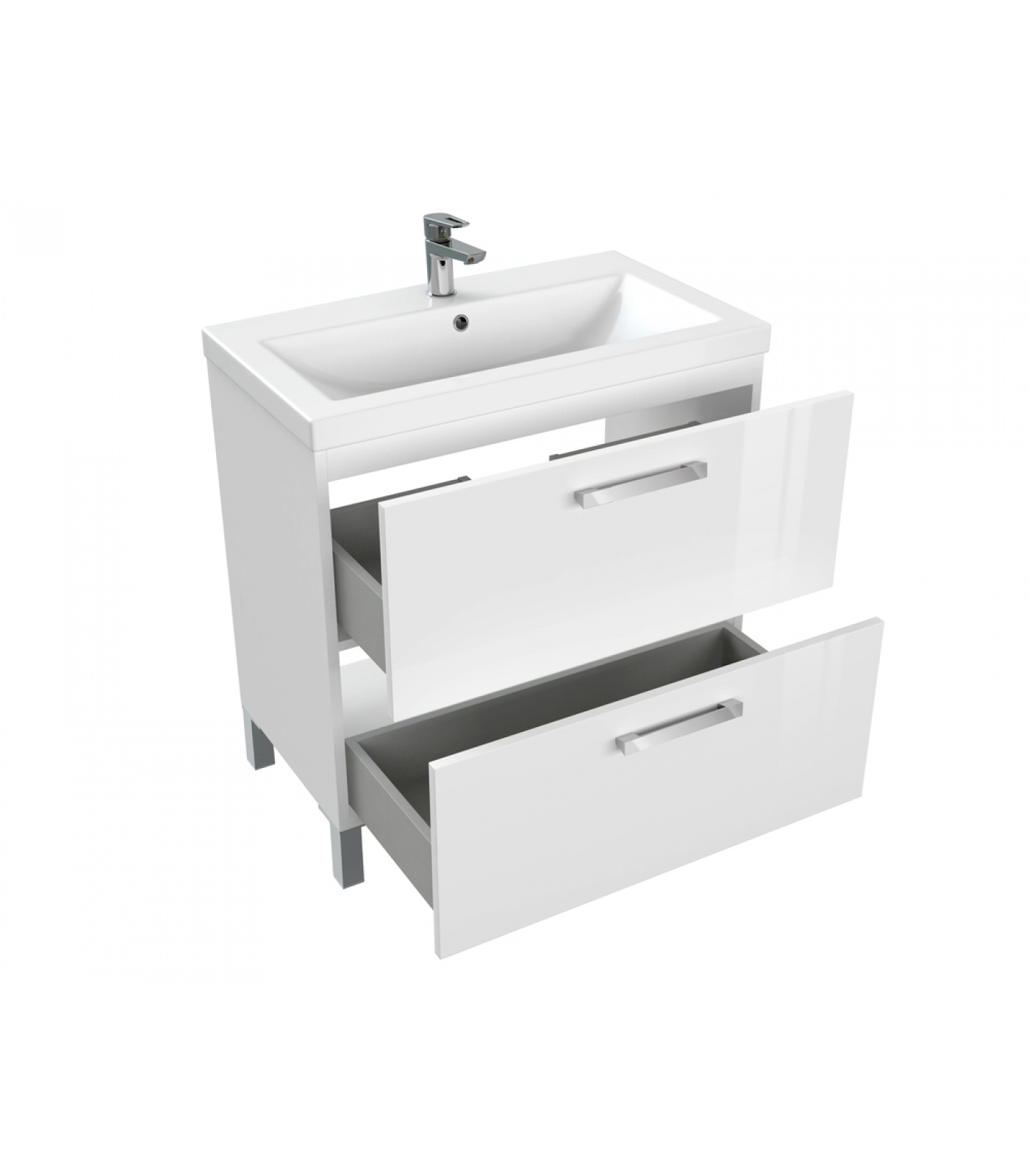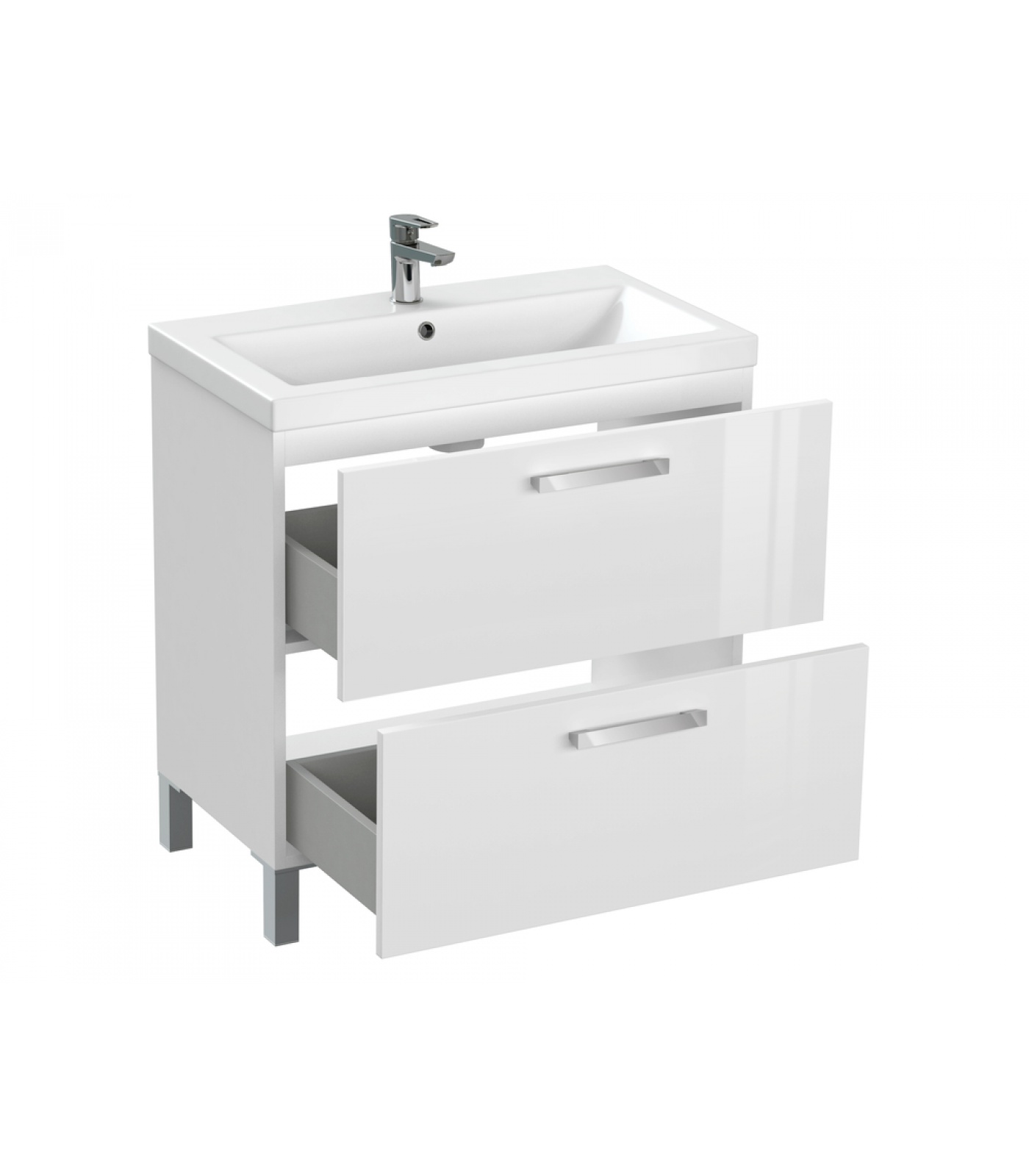 Тумба под раковину MELAR выполнена в нетеряющем актуальности белом цвете. Гладкие глянцевые фасады ящиков дополнены хромированными ручками четкой геометрической формы. Скрытые направляющие ящиков снабжены доводчиками, что позволяет закрывать ящик мягко и бесшумно. Тумбу можно как подвешивать на стенку, так и устанавливать на ножки, что делает ее универсальным и функциональным решением для любой ванной комнаты.