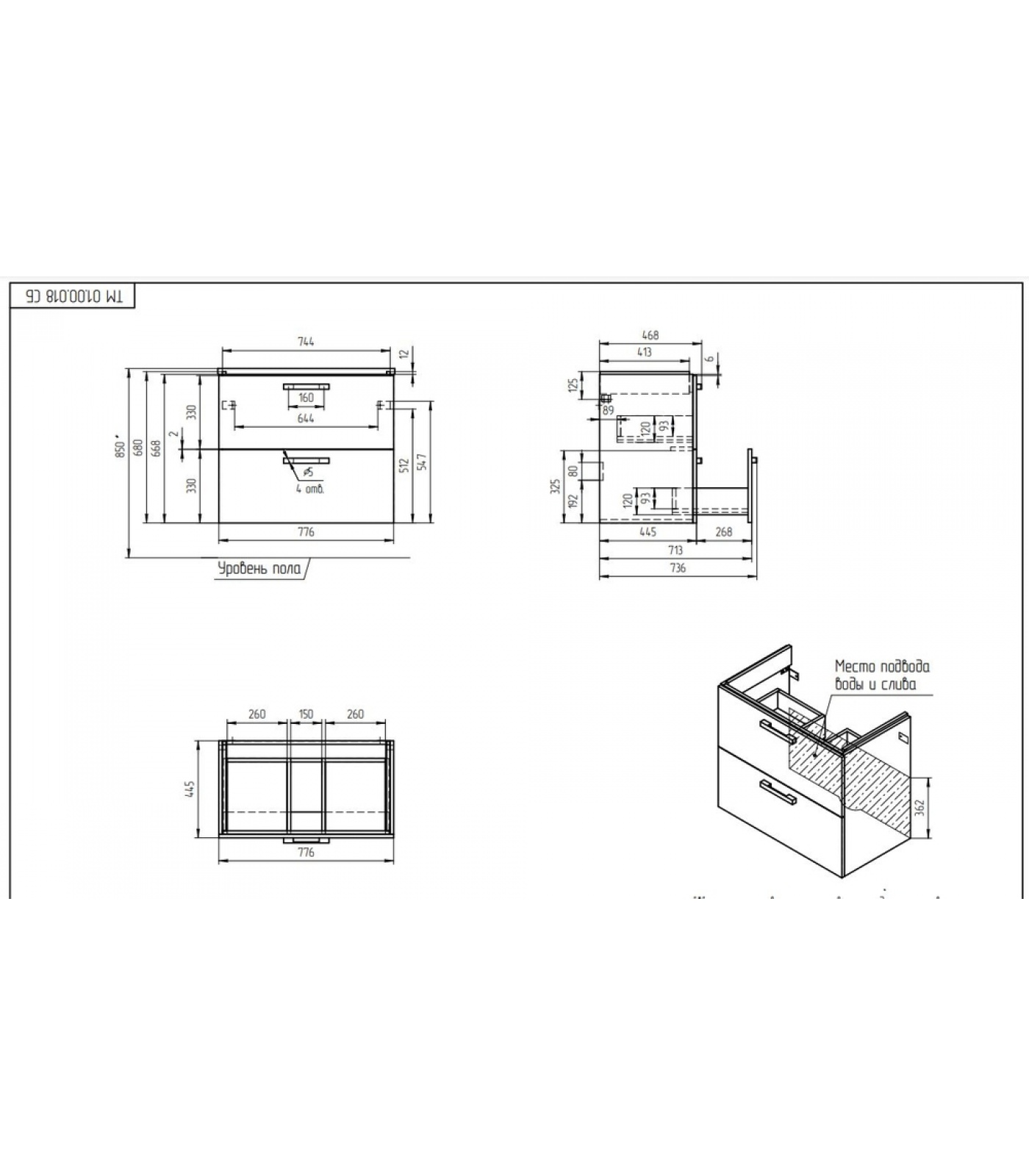 ВНИМАНИЕ: В КОМПЛЕКТАЦИЮ ДАННОГО АРТИКУЛА НОЖКИ, РАКОВИНА И СМЕСИТЕЛЬ НЕ ВХОДЯТ!