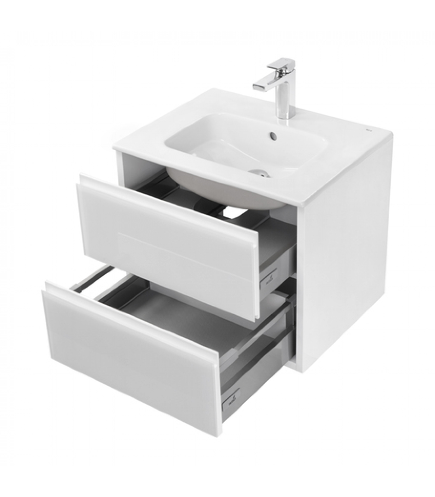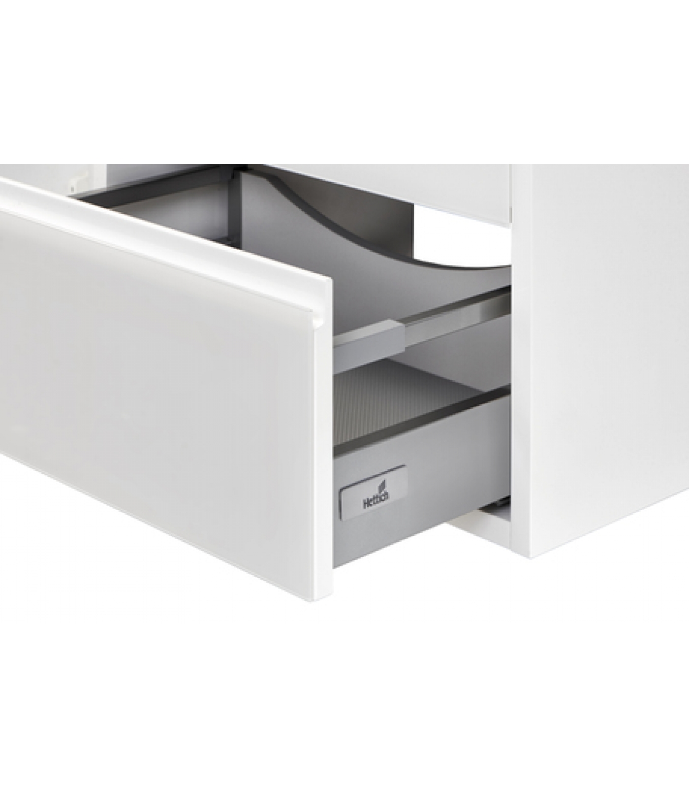 Тумба Римини 60 от AQUATON отличается чёткой геометрией форм и создана для тех, кто ценит современный строгий и лаконичный дизайн, а также безупречное исполнение. Два металлических ящика тумбы снабжены направляющими полного выдвижения с системой мягкого закрывания. Минималистичный дизайн модели подчеркивает полное отсутствие лицевой фурнитуры. Корпус, изготовленный из влагостойкой ЛДСП, и фасады из МДФ, окрашены в белый цвет полиэфирной краской ультрафиолетового отверждения с высокой степенью глянца. Дополнит комплект прямоугольная раковина Victoria-N Unik 60х46 испанского производителя Roca.