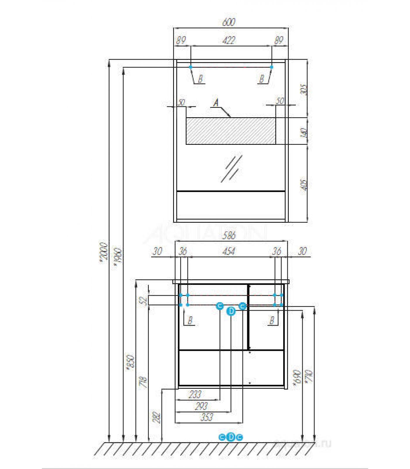 Тумба под раковину Aquaton Ривьера 60 белый матовый 1A238801RVX20