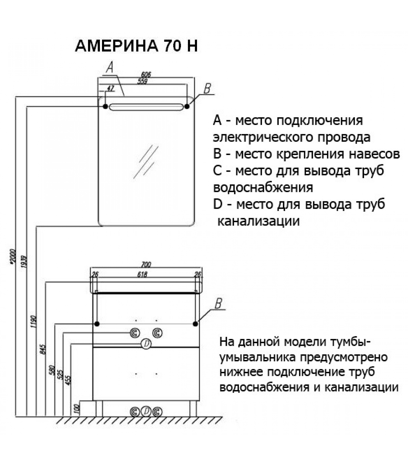 Тумба АКВАТОН Америна 70Н под умывальник Тигода 70, белая