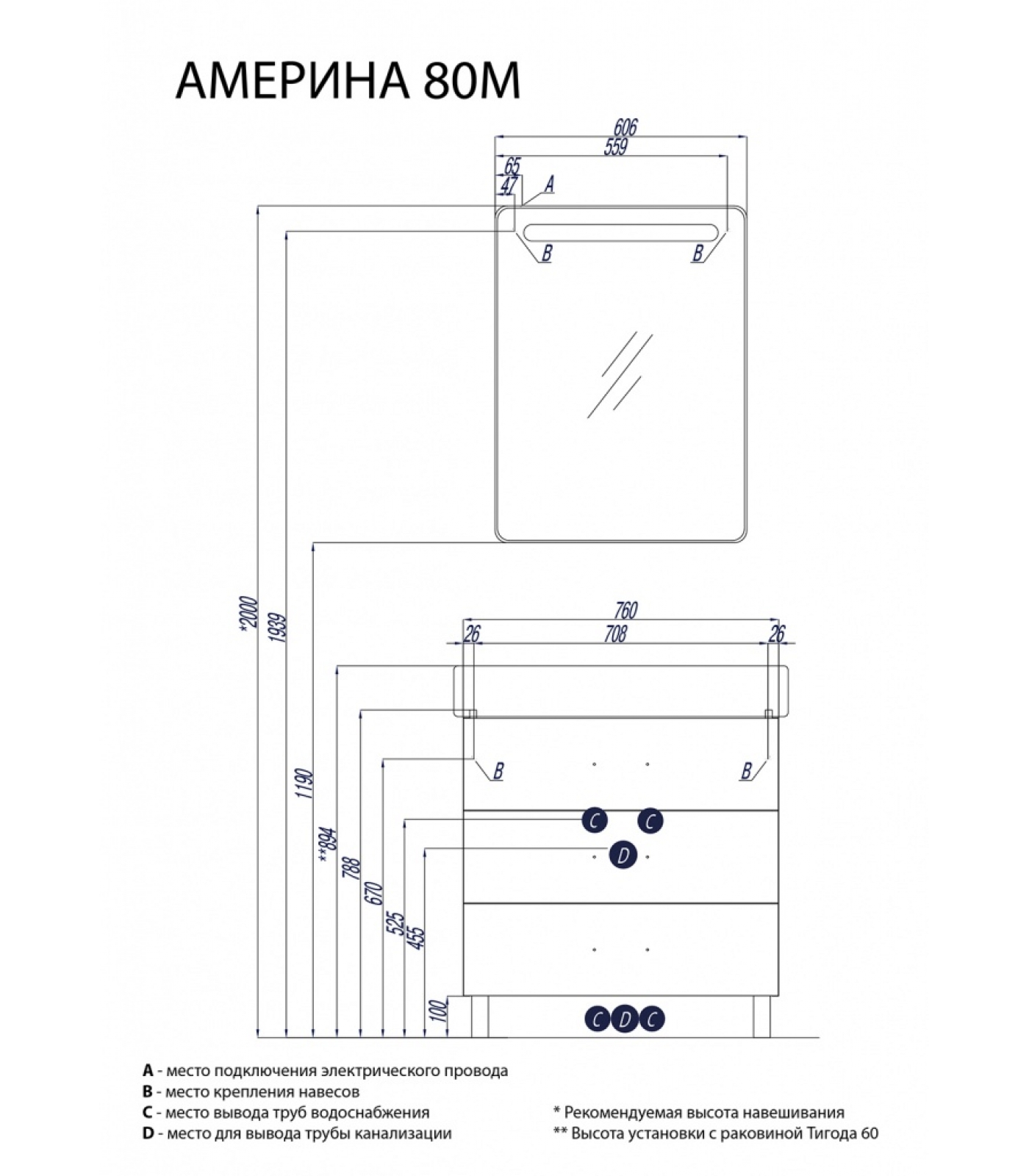 Тумба АКВАТОН Америна 80М под умывальник Тигода 80, белая