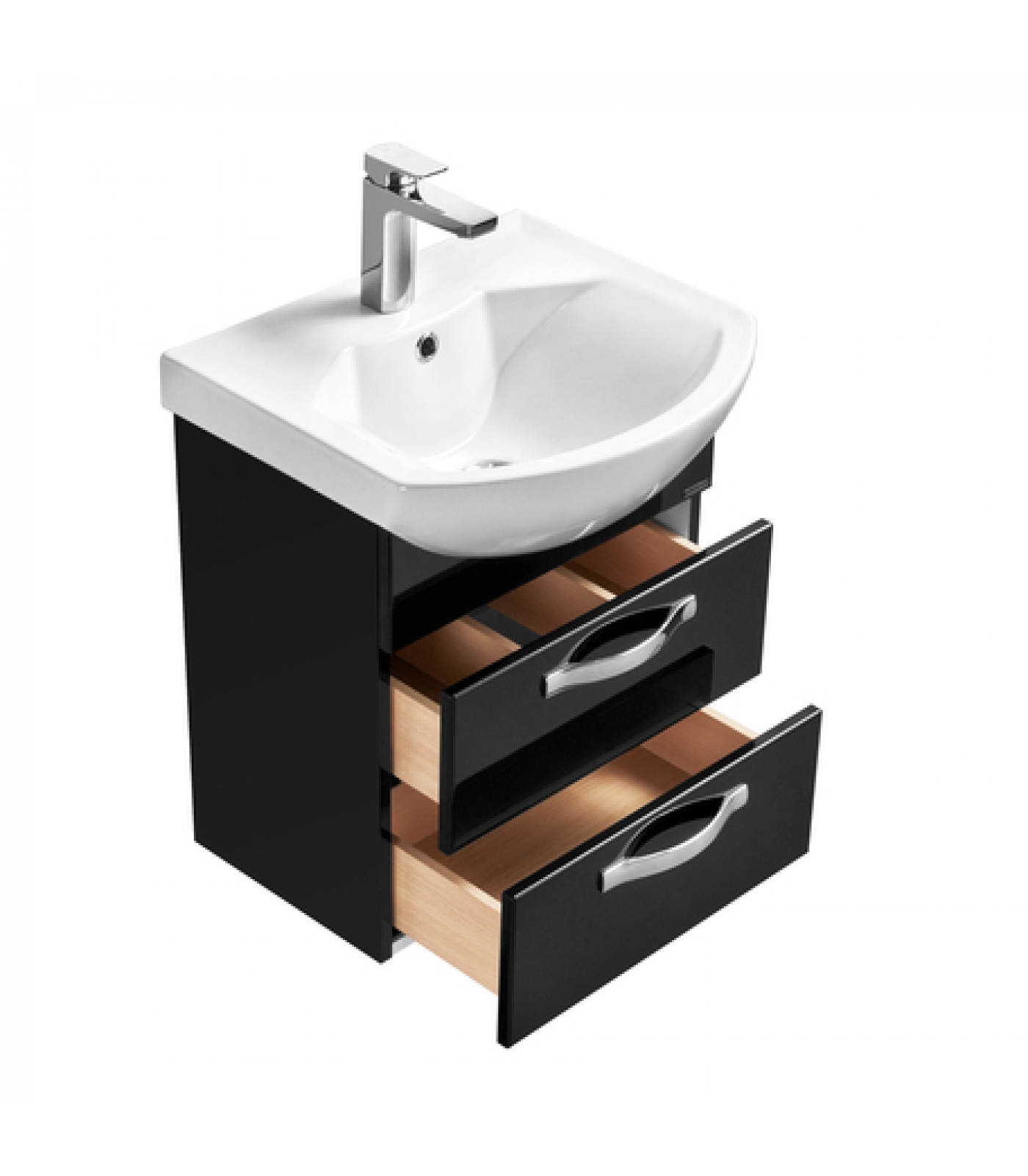 Тумба Ария 50 M от AQUATON в чёрной отделке выполнена в современном стиле. Удобная подвесная модель изготавливается из влагостойкой ЛДСП и высококачественной МДФ, покрытых полиэфирной краской ультрафиолетового отверждения с высокой степенью глянца. Тумба с двумя вместительными ящиками из влагостойкой ДСП, оснащенными направляющими скрытого монтажа и доводчиками, позволяет разместить всё необходимое. Ящики установлены на шариковые направляющие.