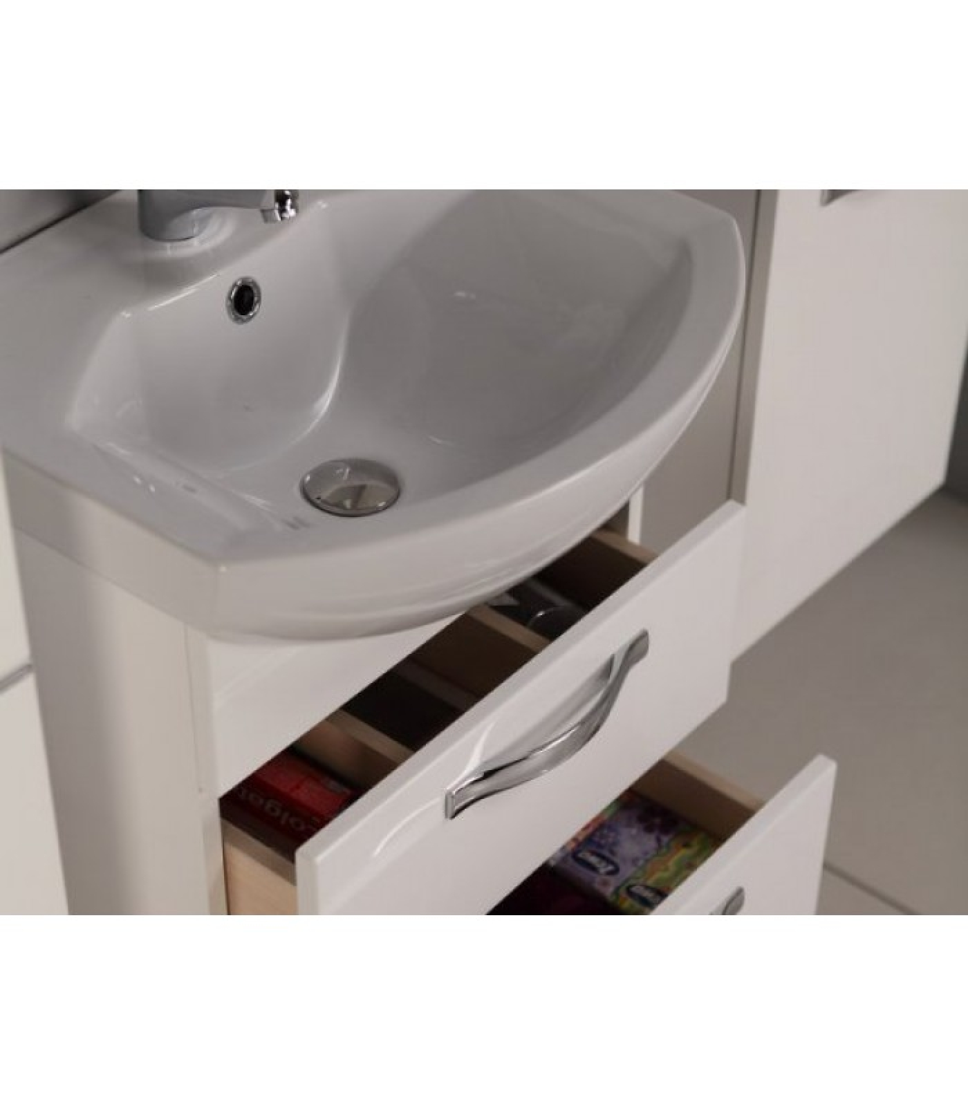 Эффектная белая тумба с двумя ящиками Ария 80 M от бренда AQUATON - актуальное решение для практичных ванных комнат в современном стиле. Привлекательный внешний вид, износостойкость и долговечность изделия обеспечивают корпус из влагостойкой ЛДСП и фасады из высококачественной МДФ, окрашенные полиэфирной краской ультрафиолетового отверждения с высокой степенью глянца. Тумба содержит два вместительных выдвижных ящика, в верхнем из которых предусмотрена удобная система внутренней организации. Ящик установлен на направляющие полного выдвижения немецкого производителя Blum, благодаря чему возможно использование раковины выступающей вперед, шириной 80 см.