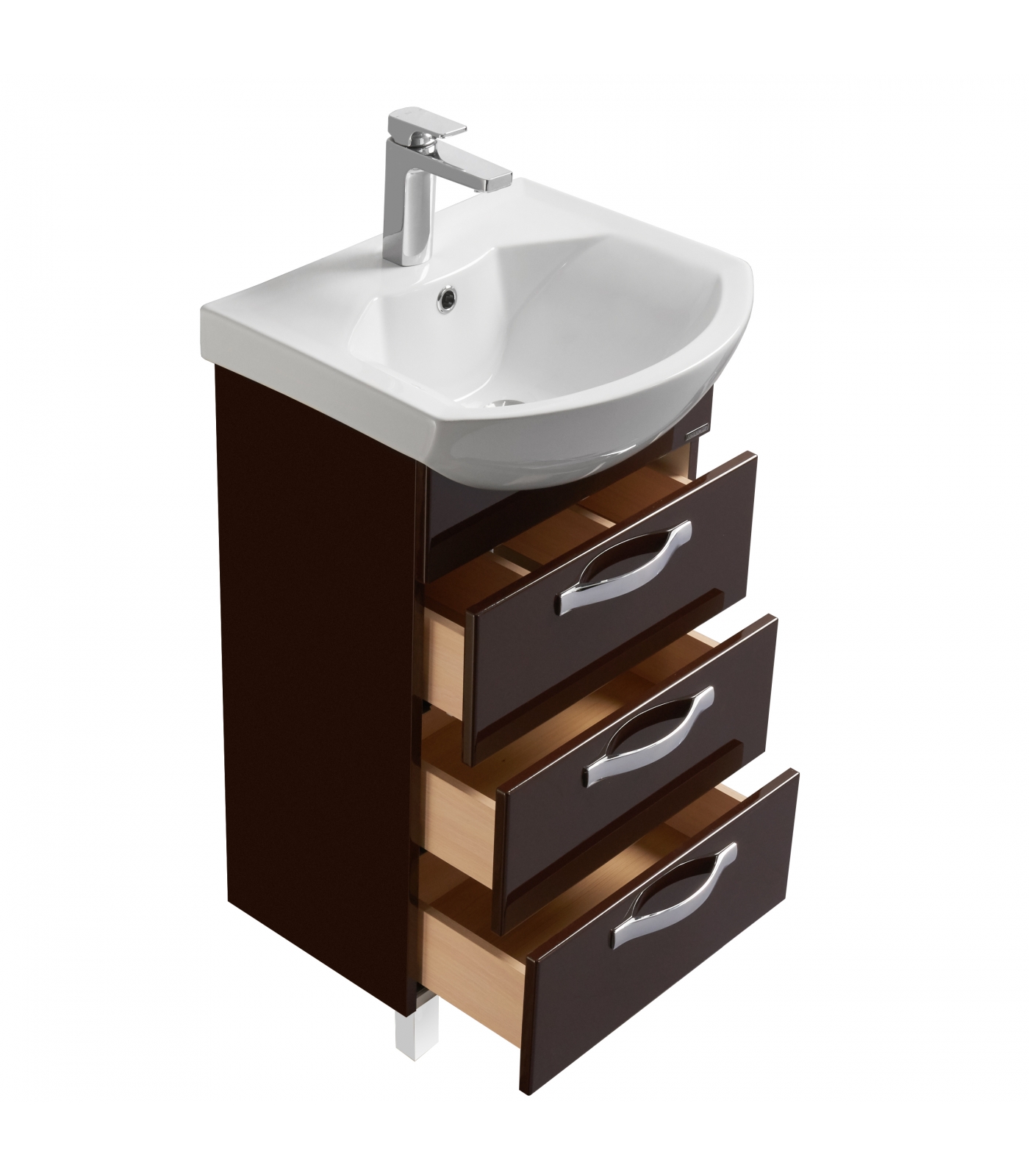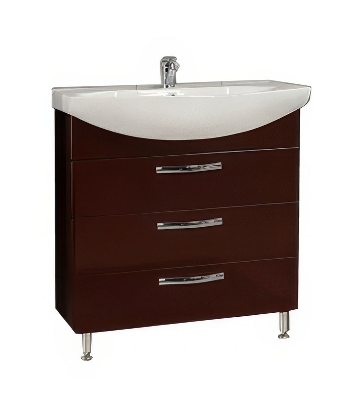 Тумба Ария 80 H от AQUАTON в строгом темно-коричневым исполнении - выбор приверженцев элегантного и лаконичного современного стиля. Корпус из влагостойкой ЛДСП и фасады из высококачественной МДФ окрашены полиэфирной краской ультрафиолетового отверждения, что обеспечивает привлекательный внешний вид, износостойкость и долговечность изделия. Тумба на двух изящных ножках имеет три вместительных ящика, верхний из которых снабжен вставками организующими его пространство, которые позволят разместить все необходимое. Для комплектации данной модели предлагается контрастное решение - белоснежная раковина от бренда Santek.