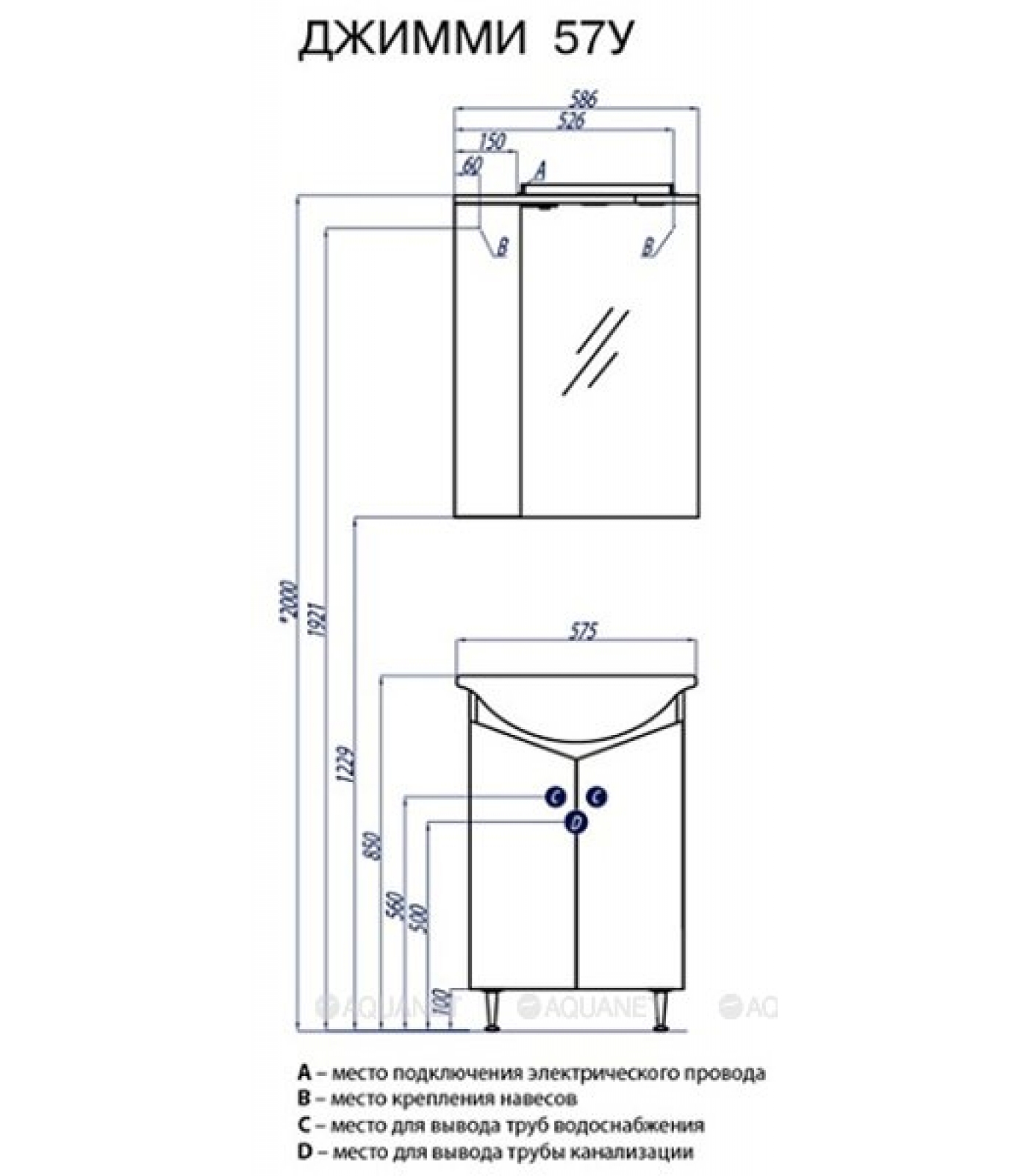 Тумба АКВАТОН Джимми 57 У под умывальник CLASSIC-55 B