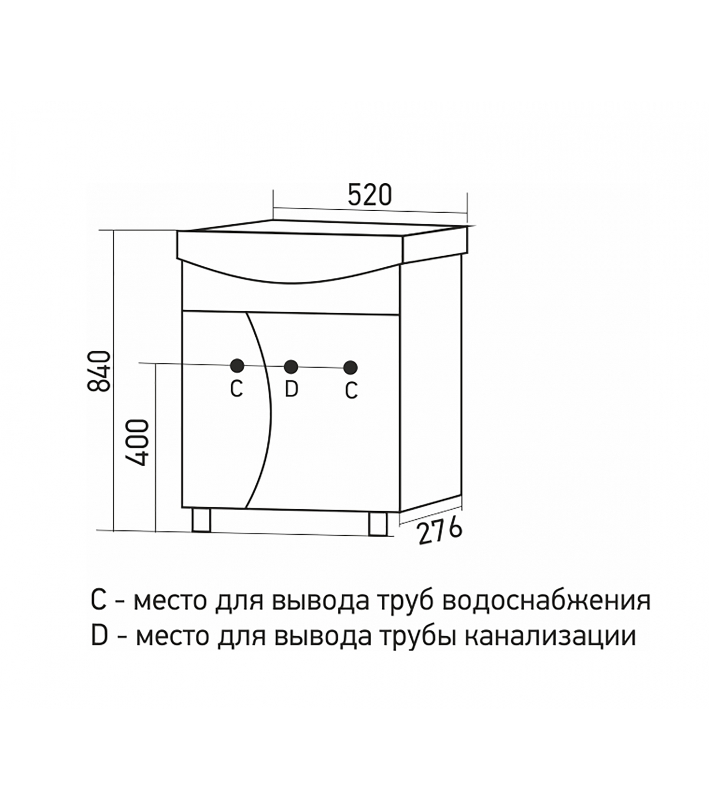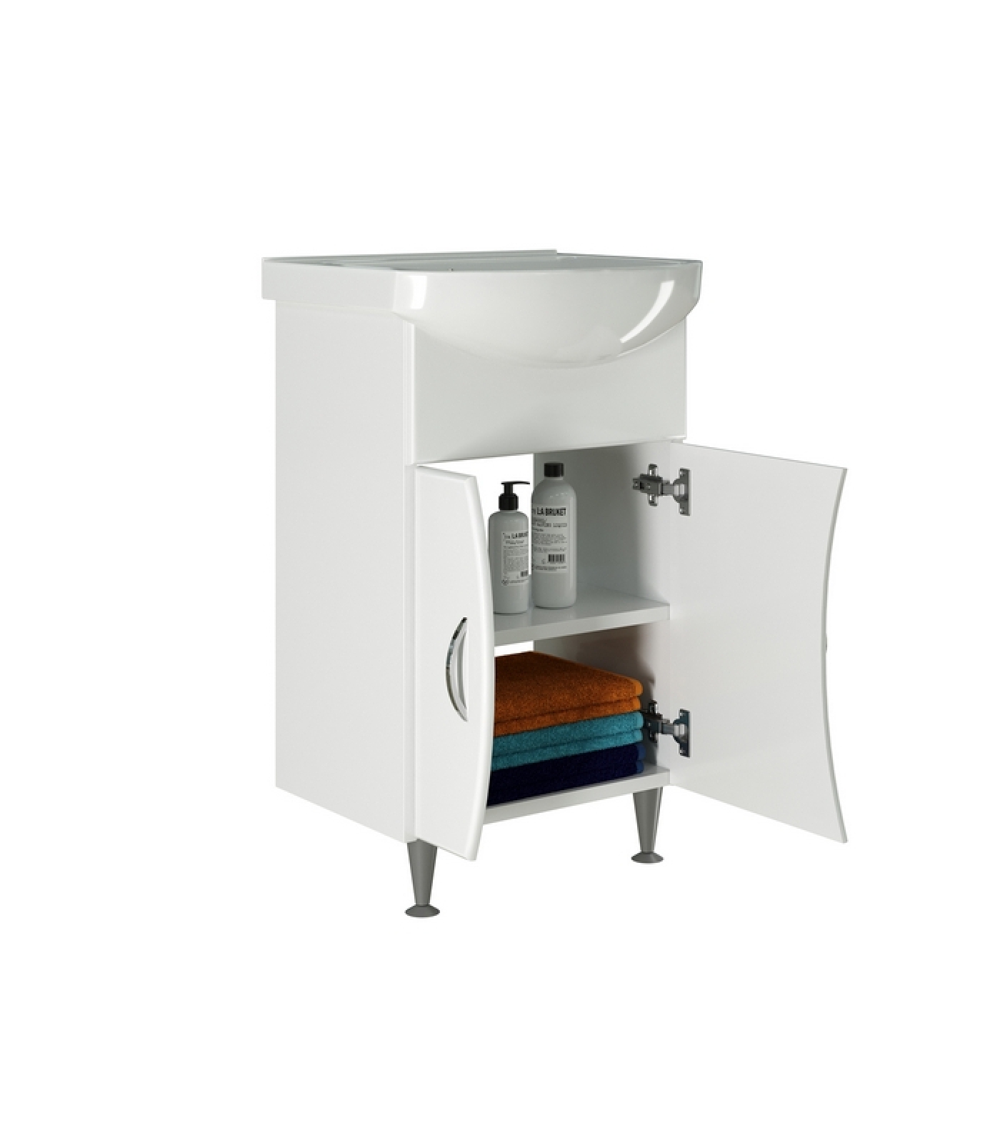 Корпус тумбы под умывальник изготовлен из МДФ и покрыт прочной глянцевой пленкой.