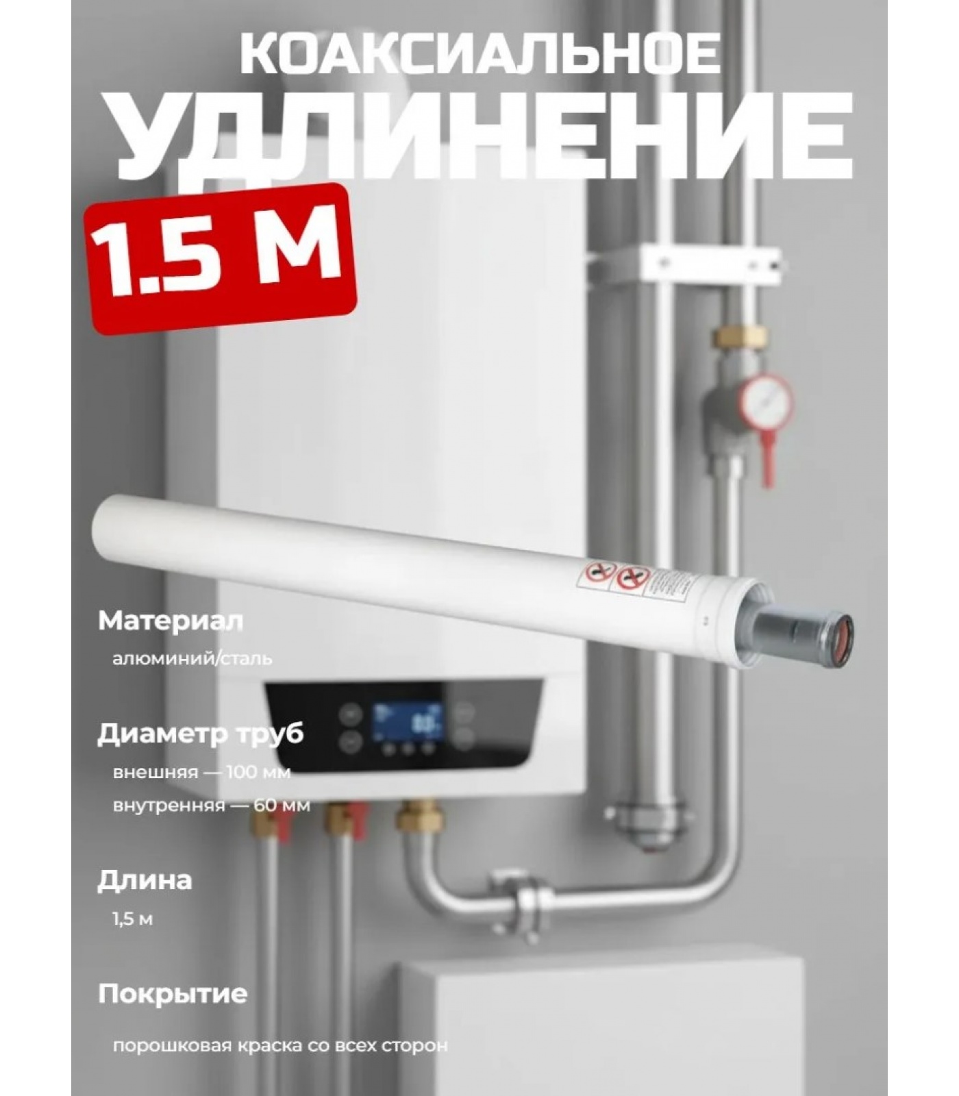 Удлинение коаксиальное Ø60/100 -1,5м