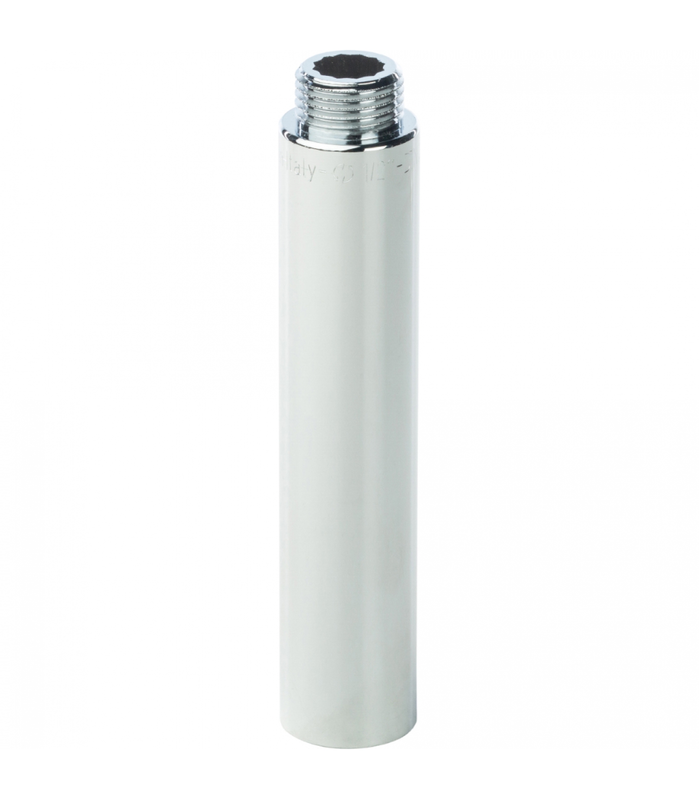 Удлинитель – фитинг, используемый в качестве соединительного элемента в трубах. Элемент представляет собой цилиндр с укороченной резьбой. С одной стороны она нарезана на внешней части корпуса, с другой – на внутренней. Внутренний диаметр изделия выполнен в виде многогранника для удобного и быстрого монтажа. Материал конструкции - хромированная латунь, которая отличается своими антикоррозийными и эксплуатационными свойствами.